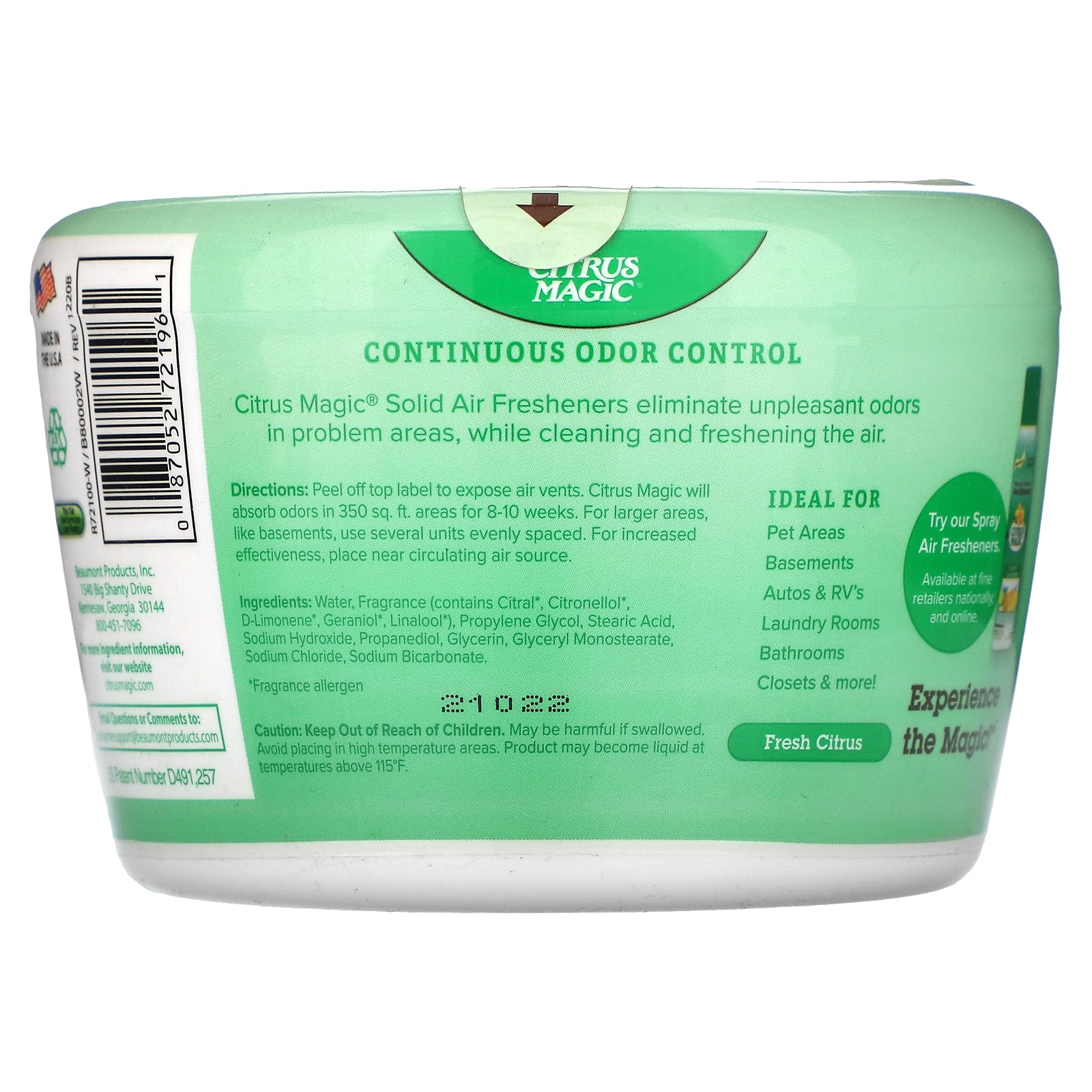 Citrus Magic® Solid Air Fresheners eliminate unpleasant odors in problem areas, while cleaning and freshening the air.
