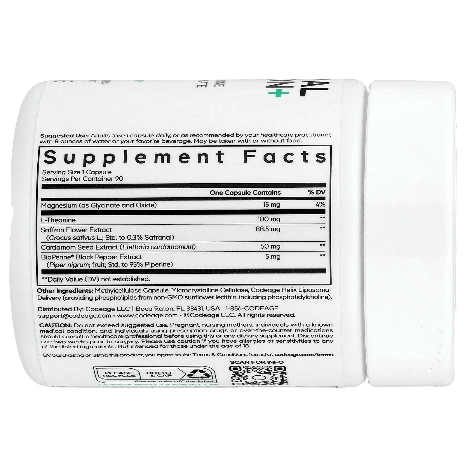 Codeage Liposomal Saffron+ contains saffron flower extract delivered with a liposomal formula, along with L-Theanine, magnesium, cardamom, and BioPerine®. This supplement is designed to support wellness routines with a blend of plant-based and mineral ingredients. The liposomal delivery system is included to help promote ingredient absorption.