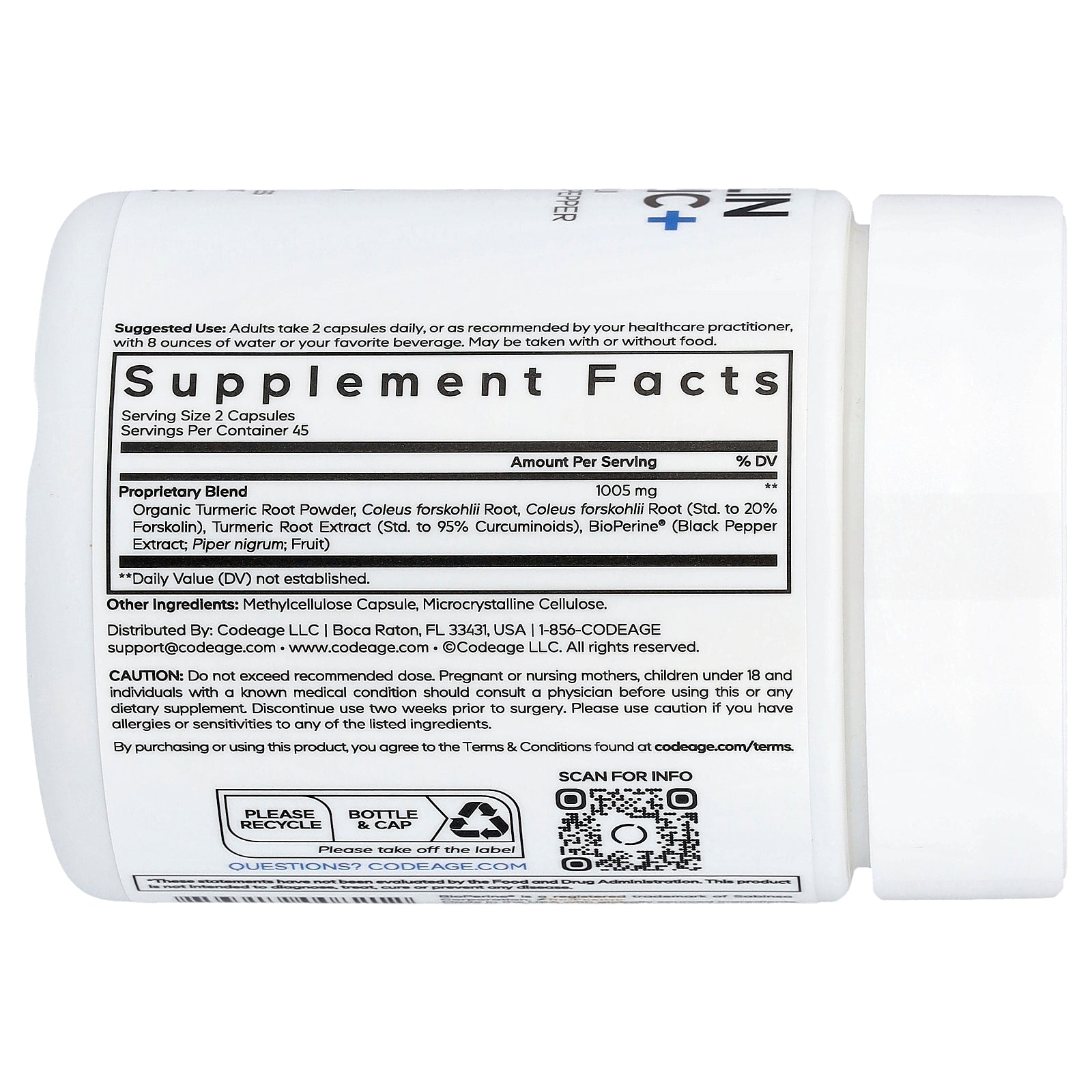 Codeage Forskolin Turmeric+ combines forskolin, turmeric, and BioPerine® black pepper in one formula. Enriched with coleus forskohlii standardized to 20% forskolin and turmeric standardized to 95% curcuminoids, this supplement offers a blend of carefully selected ingredients. Each bottle provides a 45-day supply.