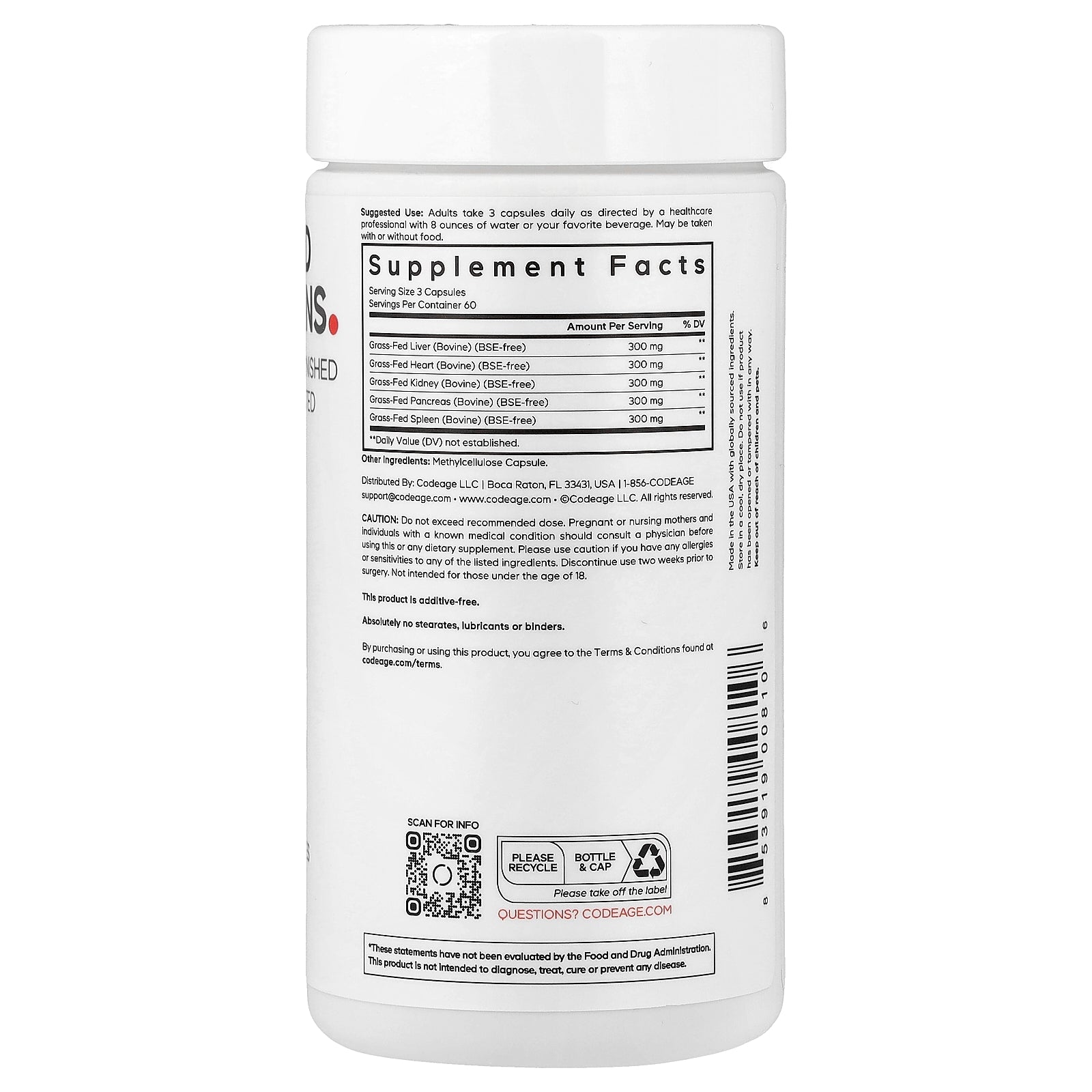 Codeage Grass-Fed Beef Organs supplement combines liver, heart, kidney, pancreas, and spleen from grass-fed, grass-finished, and pasture-raised beef in a single, convenient formula. Freeze-dried, non-defatted, and desiccated, this blend can help to provide occurring vitamins like A, B2, B6, B12, and minerals such as iron, zinc, and selenium.
