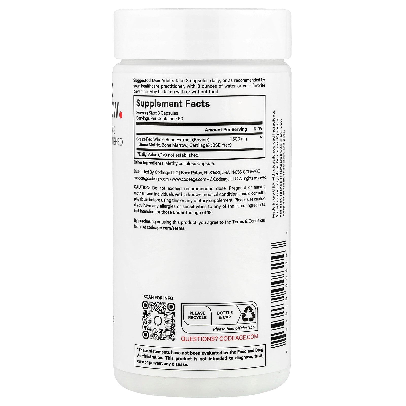 Codeage Grass-Fed Bone Marrow supplement offers 1500mg of grass-fed whole bone extract, including bone marrow, bone matrix, and cartilage per serving.
