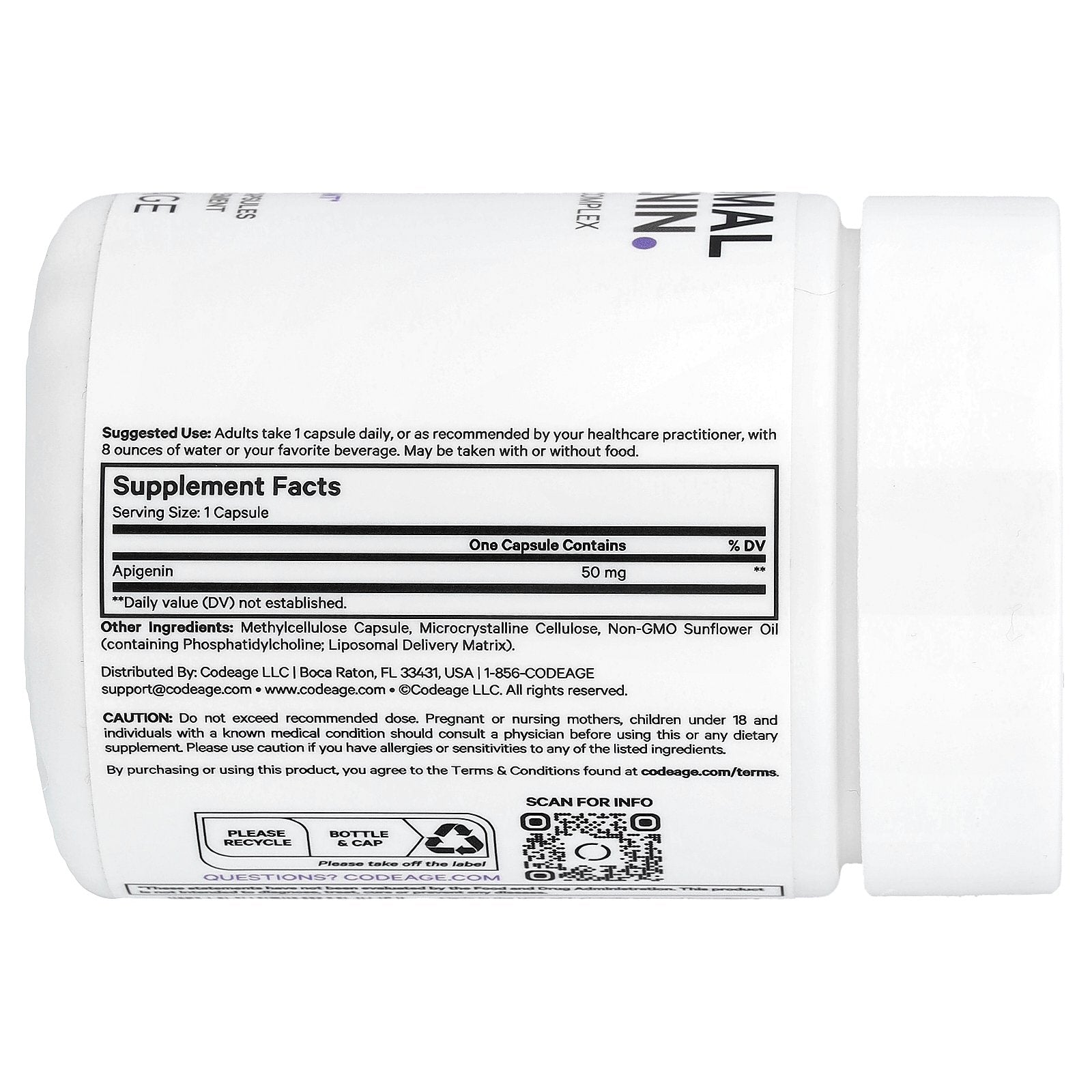 Codeage Liposomal Apigenin offers 50 mg of high-quality apigenin per serving, derived from chamomile extract for a plant-based approach to wellness.