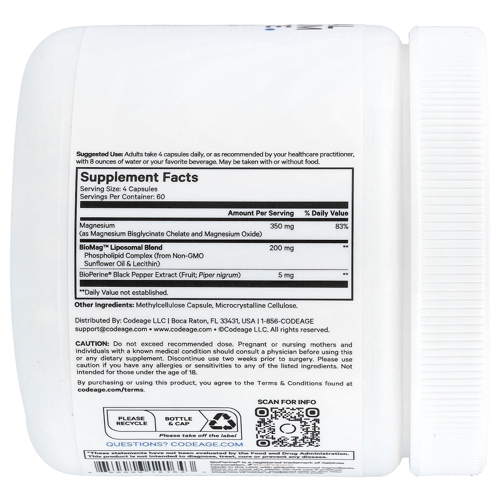 Codeage Liposomal Magnesium glycinate formula provides 350 mg of magnesium bisglycinate chelate per serving.