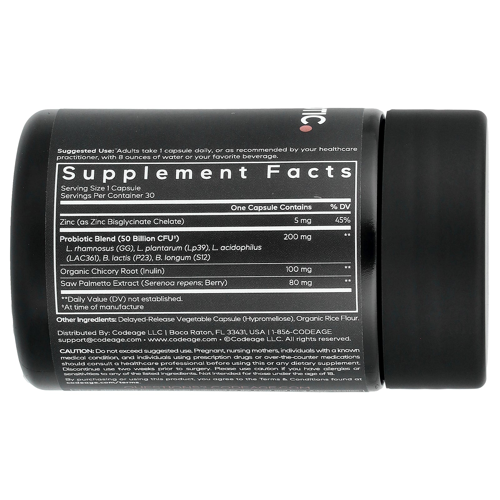 Codeage Men’s Daily Probiotic delivers 50 Billion CFU‡ per capsule from a multi-strain blend including Lactobacillus rhamnosus, L. plantarum, L. acidophilus, Bifidobacterium longum, and B. lactis. This formula is designed with men’s wellness support in mind.