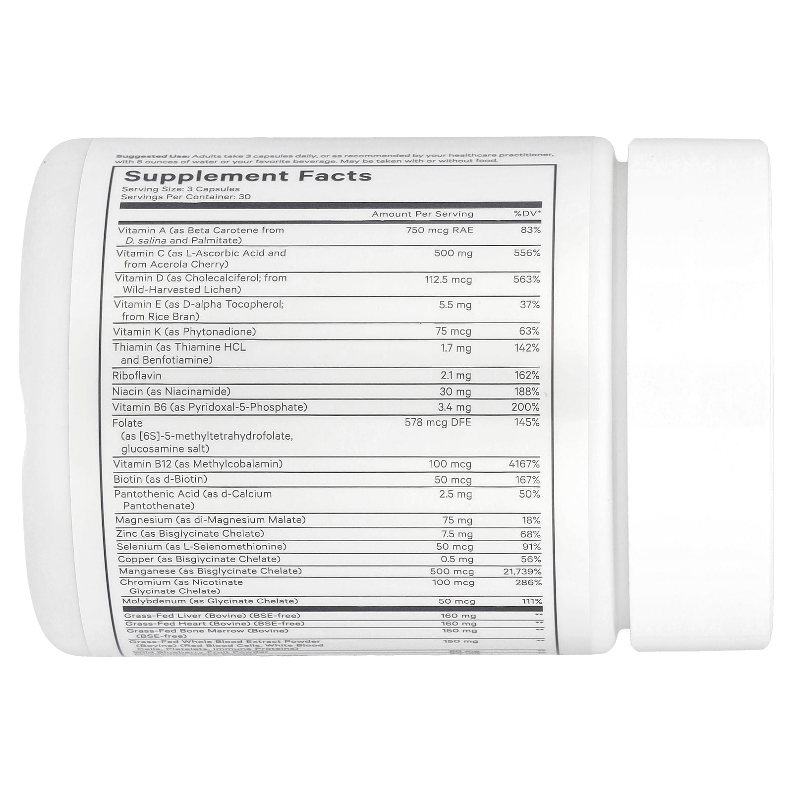 | Vitamin D (as Cholecalciferol; from Wild-Harvested Lichen) | 112.5 mcg | 563% |