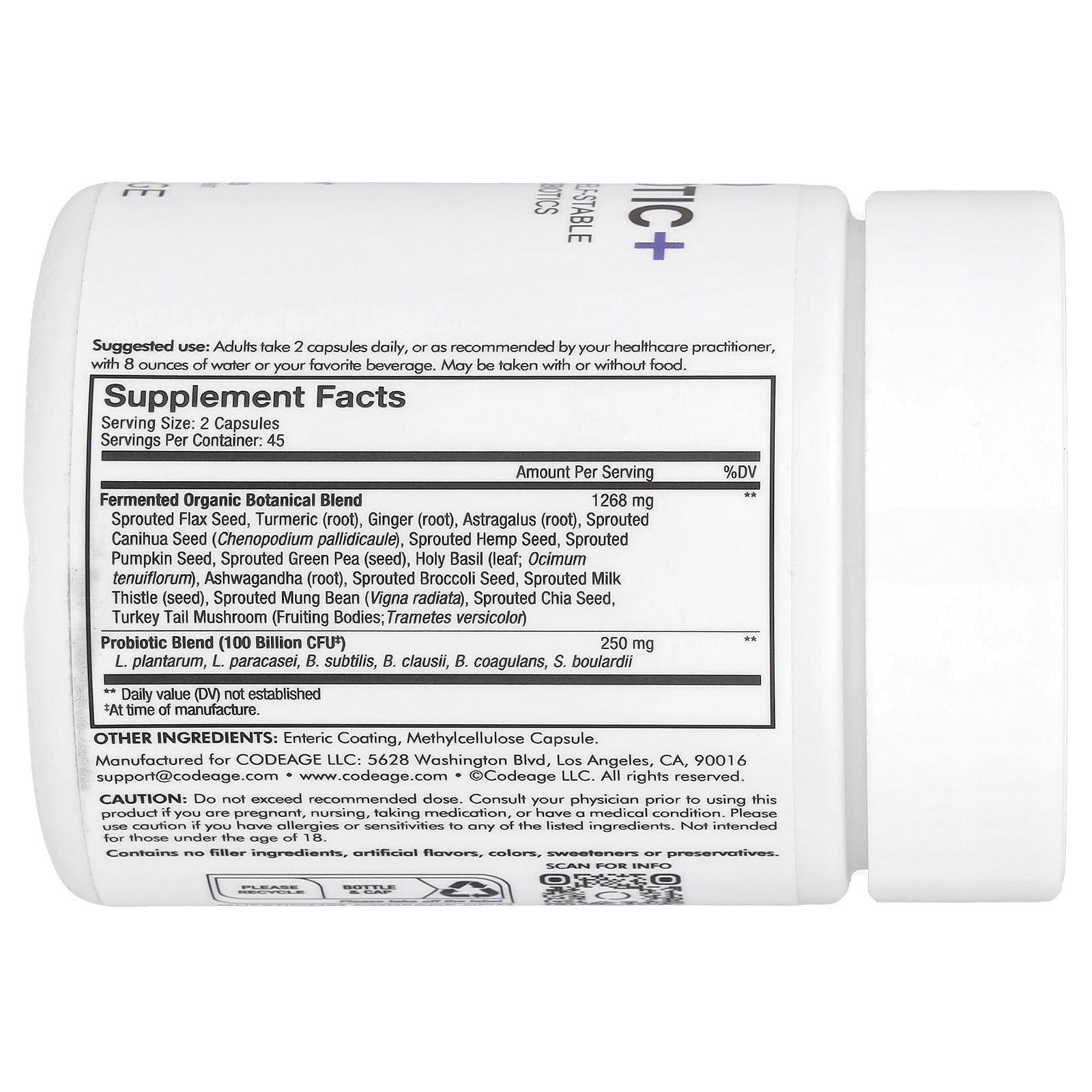 Codeage SBO Probiotic+ 100 billion CFUs offers an advanced probiotics and prebiotics supplement with 100 billion CFUs per serving† and includes a blend of 6 strains of probiotics, soil-based organisms (SBO), and prebiotics. This formula also features a comprehensive selection of fermented botanicals, including turmeric, ginger, and turkey tail mushrooms.