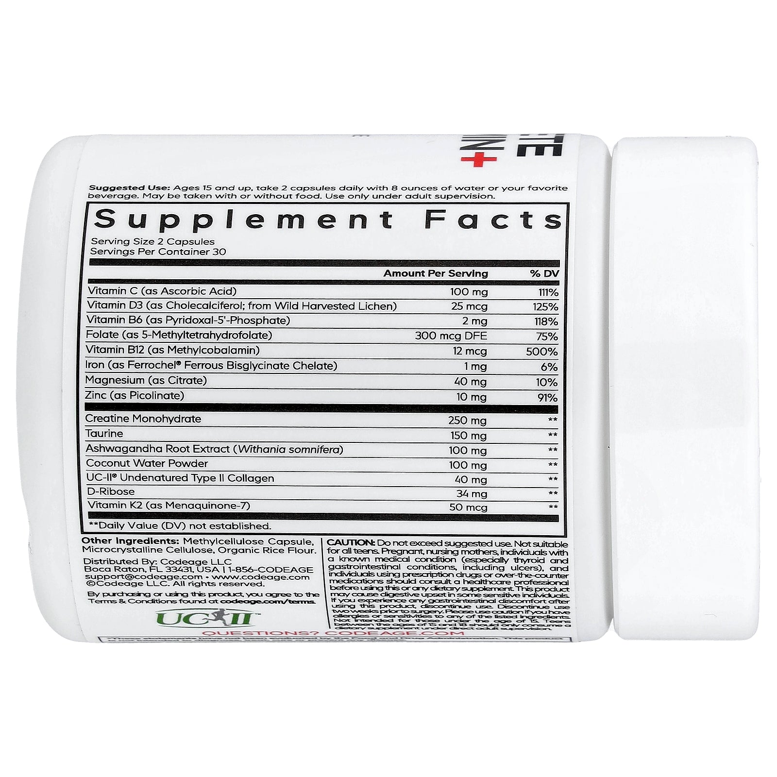 Codeage Teen Athlete Multivitamin+ is formulated for active teens aged 15 and up, offering a blend of essential vitamins, minerals, and ingredients such as creatine, taurine, and electrolytes. It includes nutrients commonly used to support the needs of young athletes, including vitamin C, D3, B6, folate, B12, magnesium, and iron.