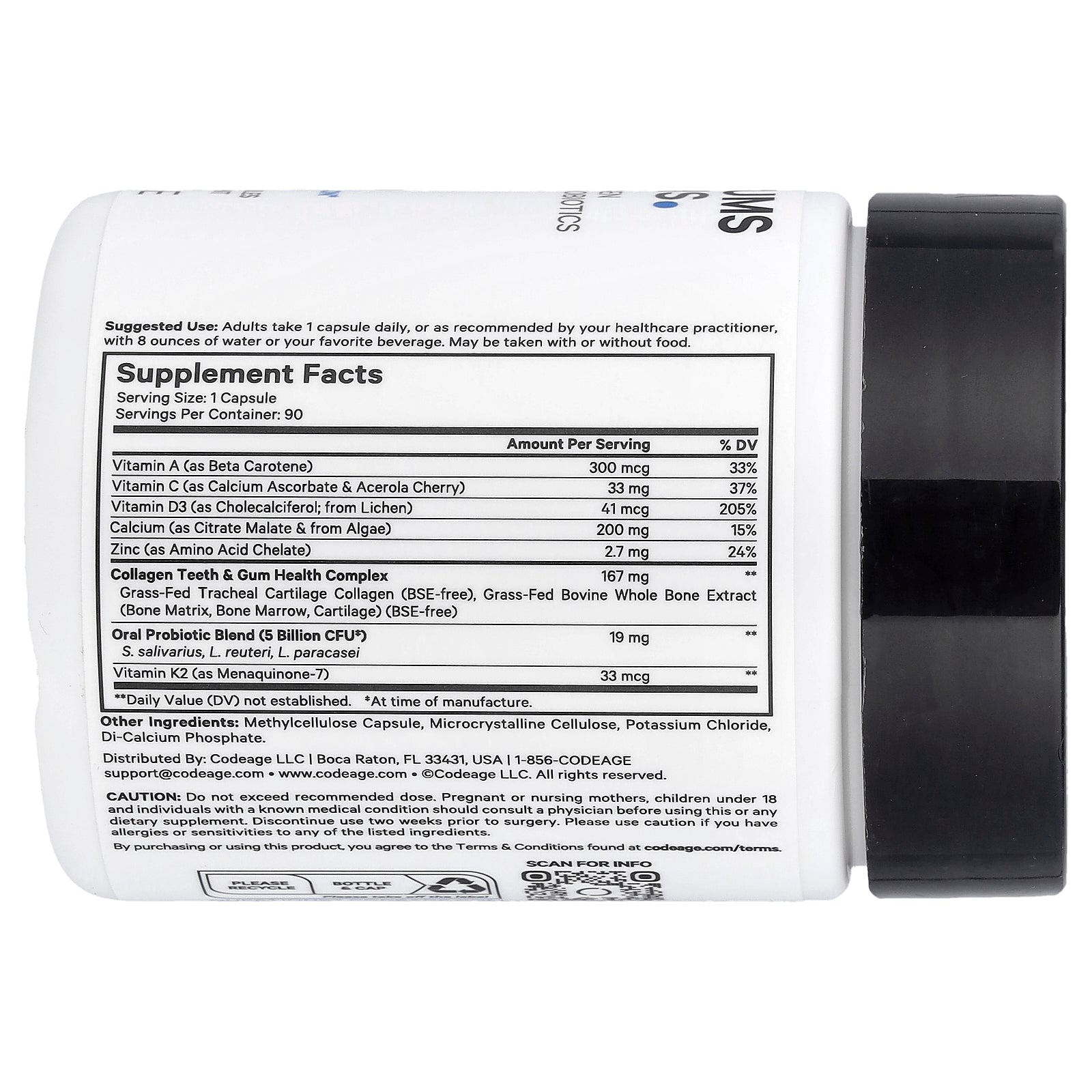 Codeage Teeth & Gums supplement is formulated with essential vitamins A, C, D3, and K2.