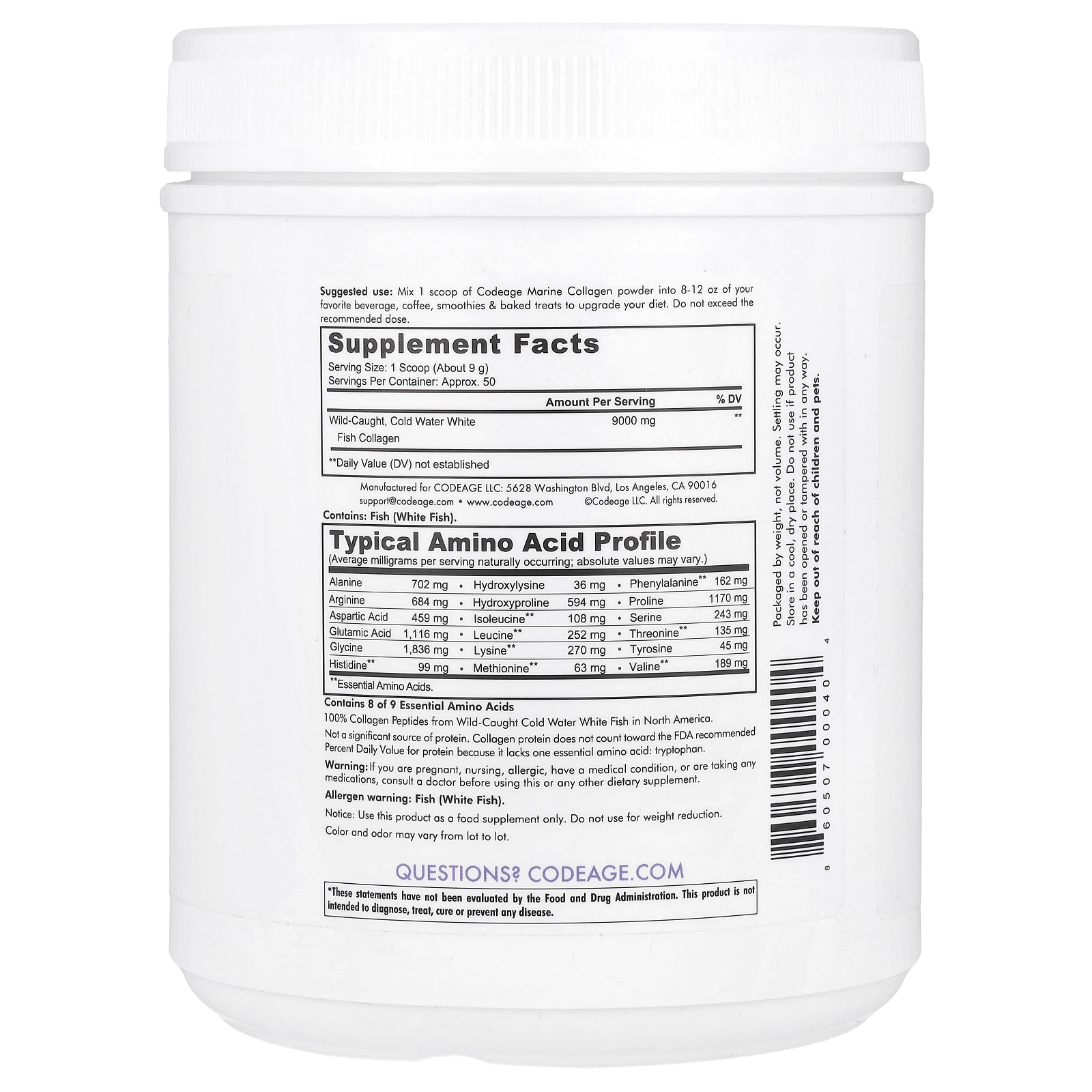 Mix 1 scoop of Codeage Marine Collagen powder into 8-12 oz of your favorite beverage, coffee, smoothies & baked treats to upgrade your diet. Do not exceed the recommended dose.