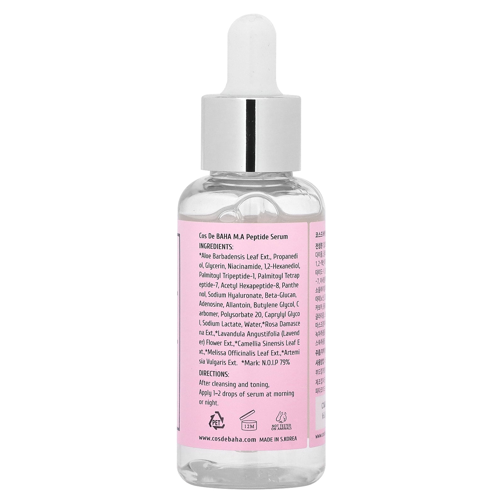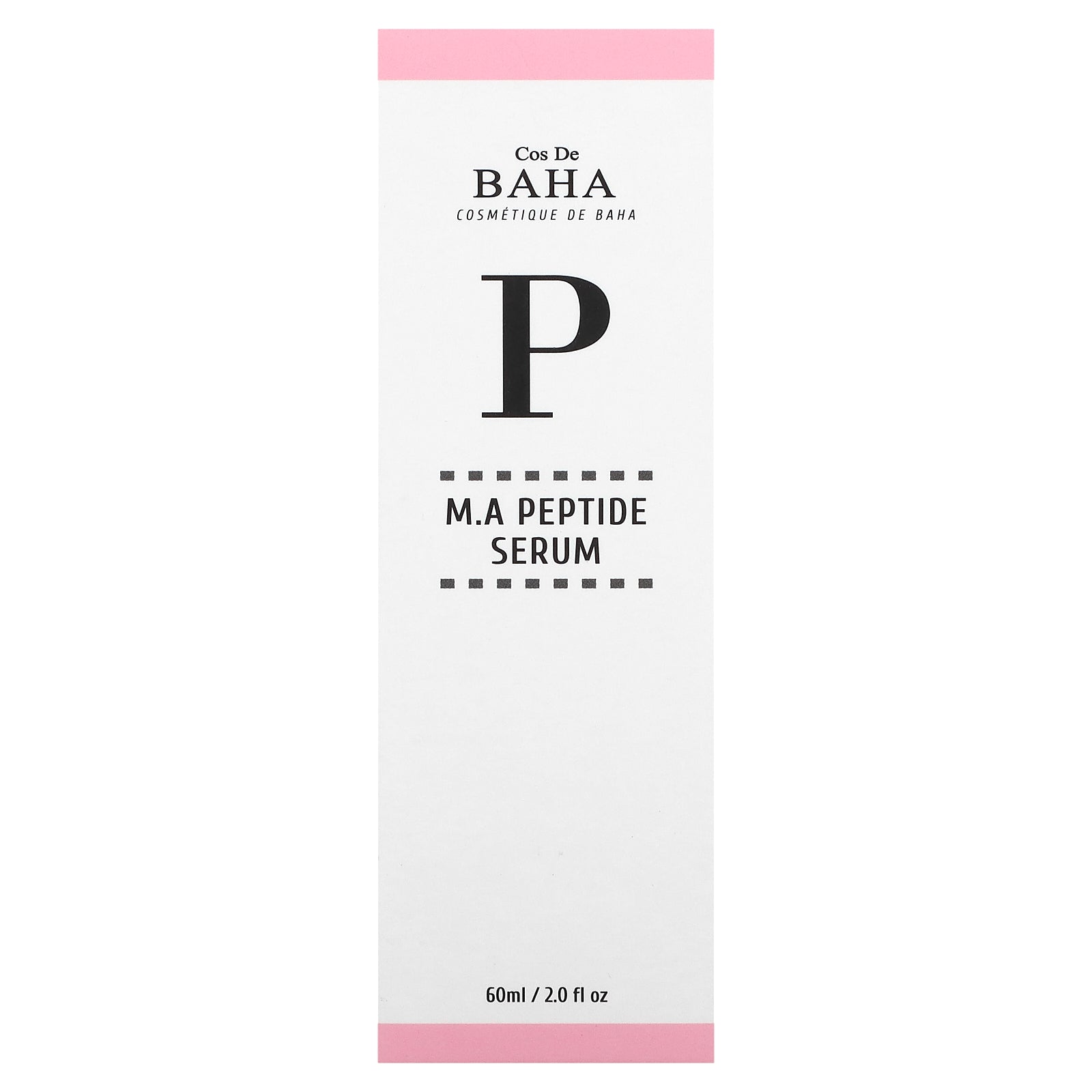 Cos De BAHA M.A Peptide Serum Cos De BAHA M.A Peptide Serum contains Matrxiyl 3000 (Palmitoyl Tripeptide -1, Palmitoyl Tetrapeptide-7), Argireline (Acetyl Hexapeptide-8), Niacinamide 2% and Hyaluronic Acid as active ingredients.