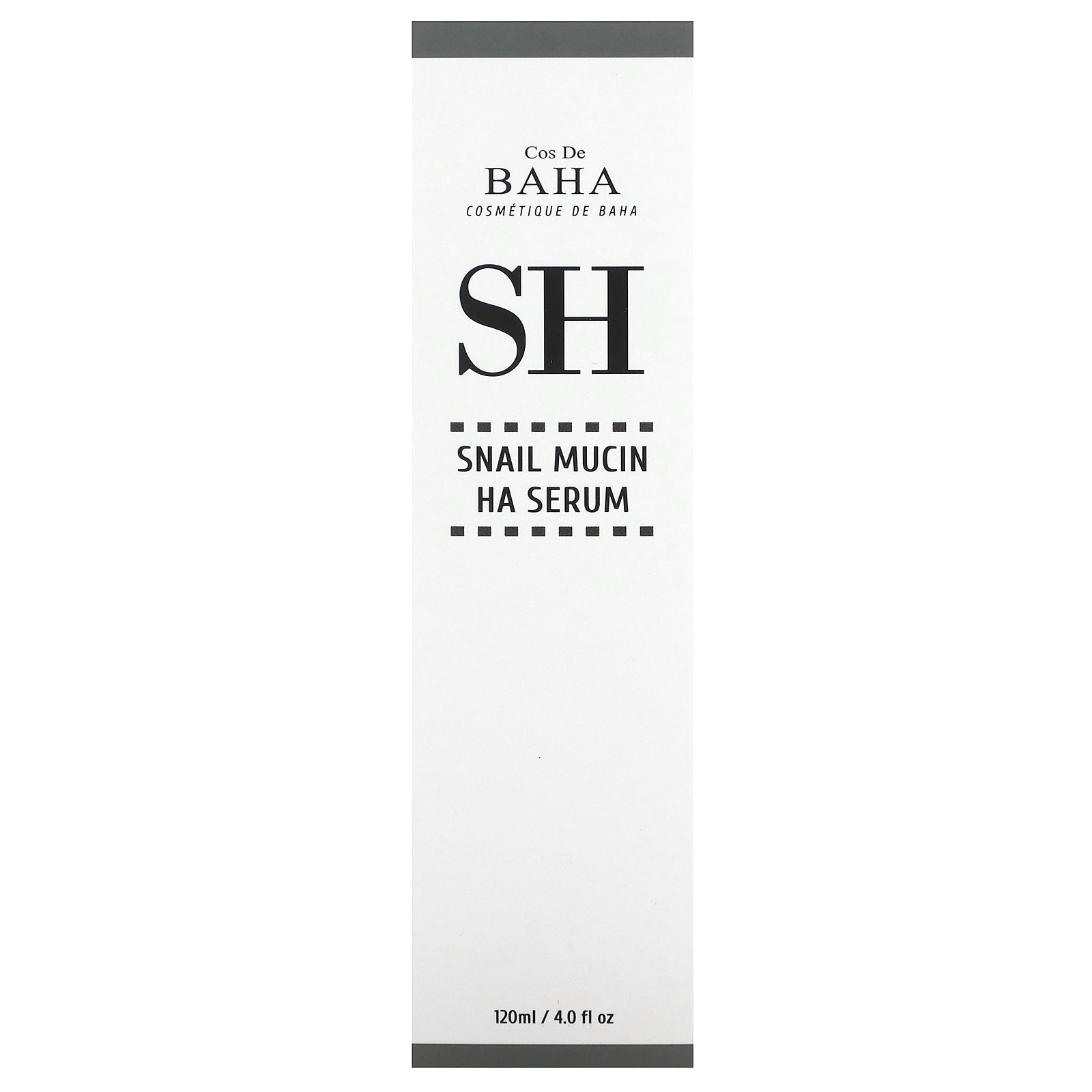 Cos De BAHA SH (Snail+HA) Serum contains Snail Secretion Filtrate 83%, Hyaluronic Acid (4,000 PPM), Niacinamide (Vitamin B3), D-Panthenol (Vitamin B5) and Natural Herb Extracts as active ingredients.