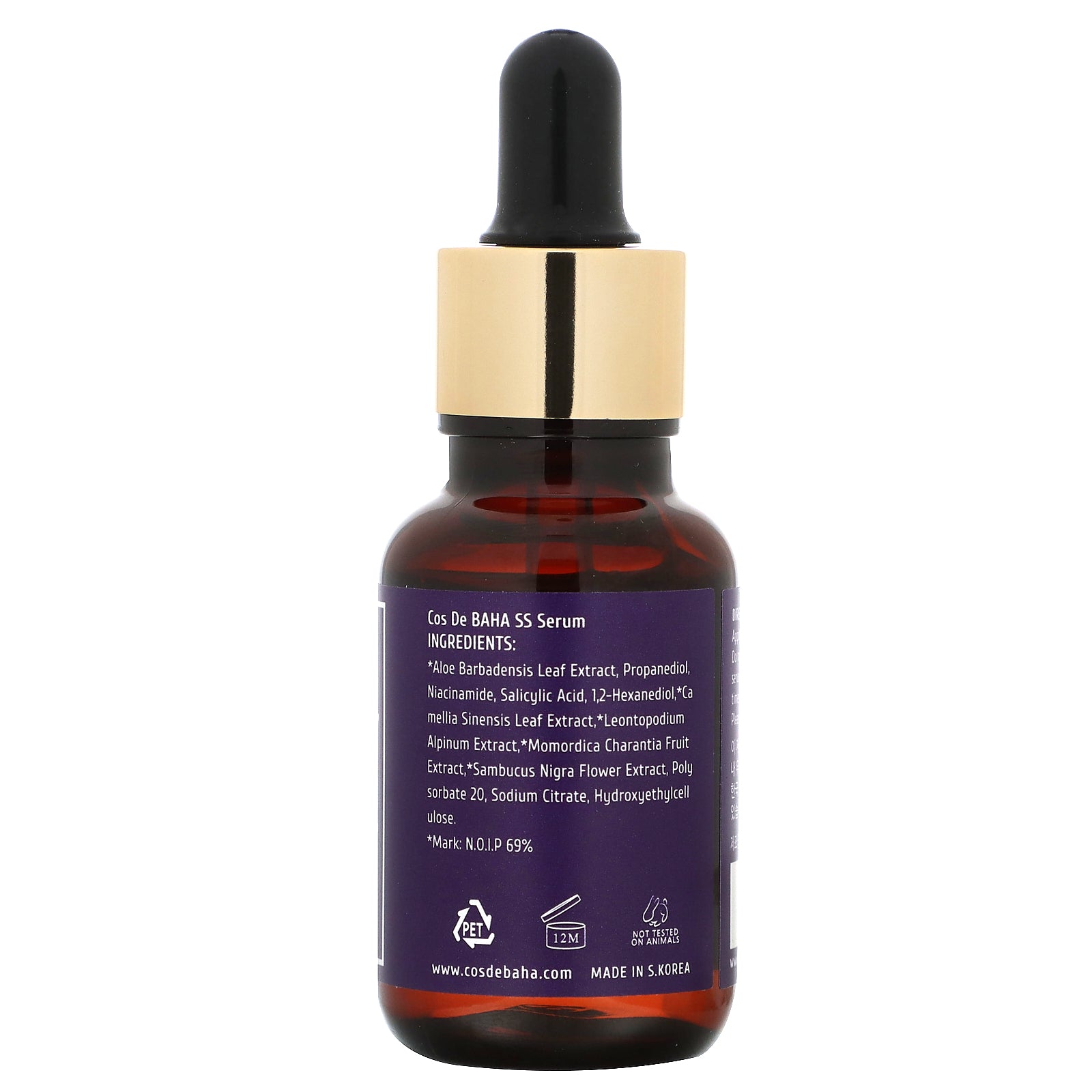 Cos De BAHA SS Serum contains Salicylic Acid (BHA) Powder 2%, Niacinamide (Vitamin B3) 2% and natural herbs as active Ingredients.