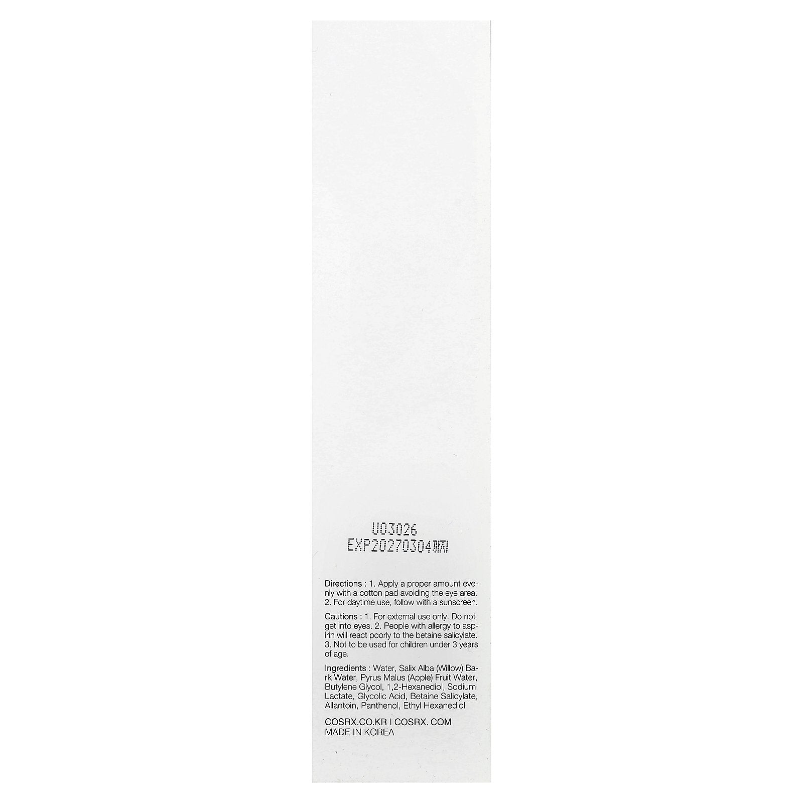 Water, salix alba (willow) bark water, pyrus malus (apple) fruit water, butylene glycol, 1,2-hexanediol, sodium lactate, glycolic acid, betaine salicylate, allantoin, panthenol, ethyl hexanediol.