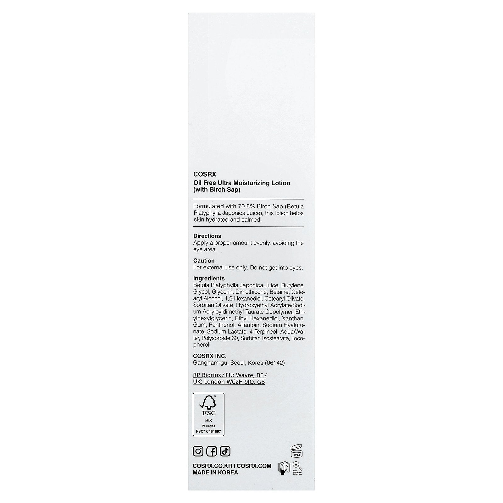 Formulated with 70.8% Birch Sap (Betula Platyphylla Japonica Juice), this lotion helps skin hydrated and calmed.
