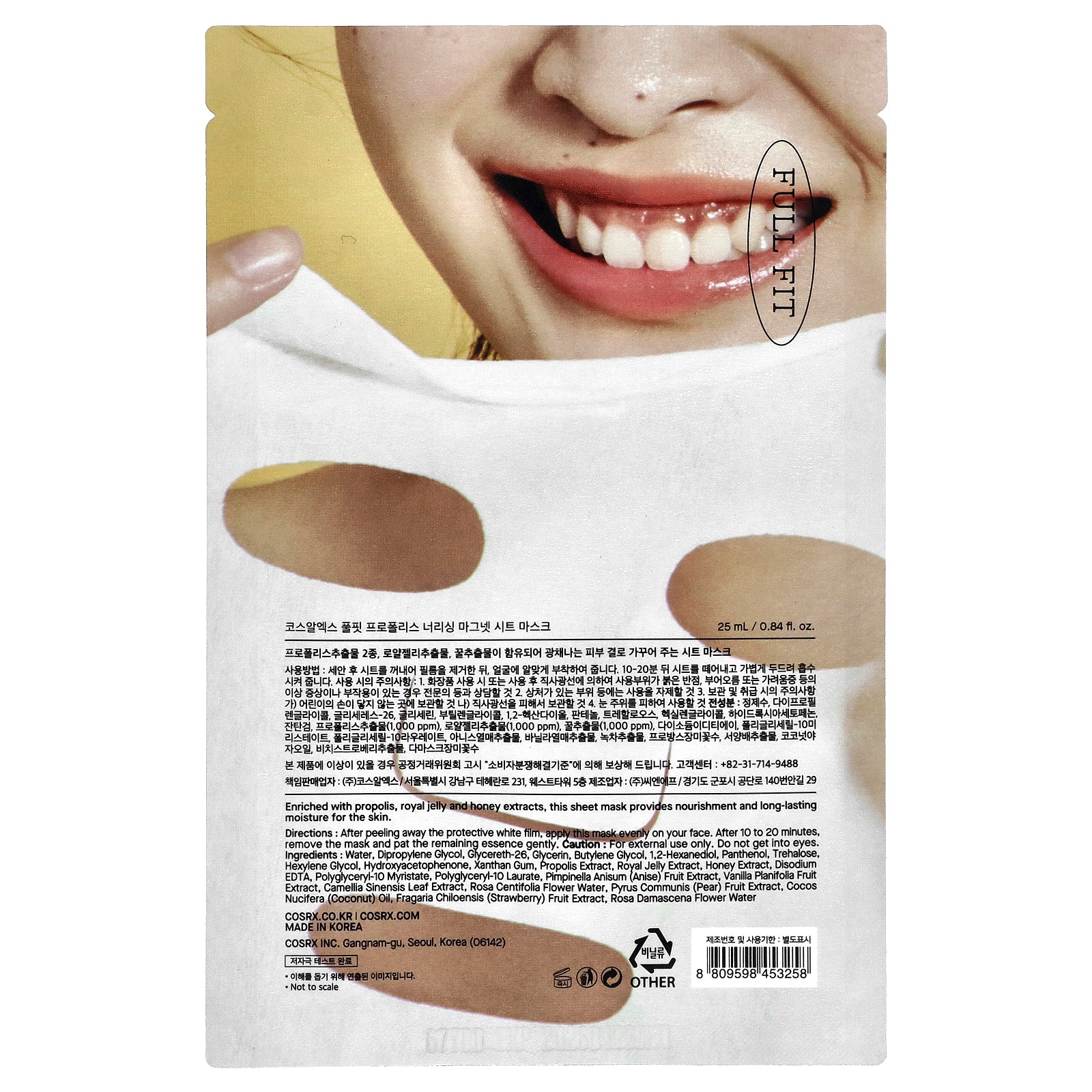 Enriched with propolis, royal jelly and honey extracts, this sheet mask provides nourishment and long-lasting moisture for the skin.