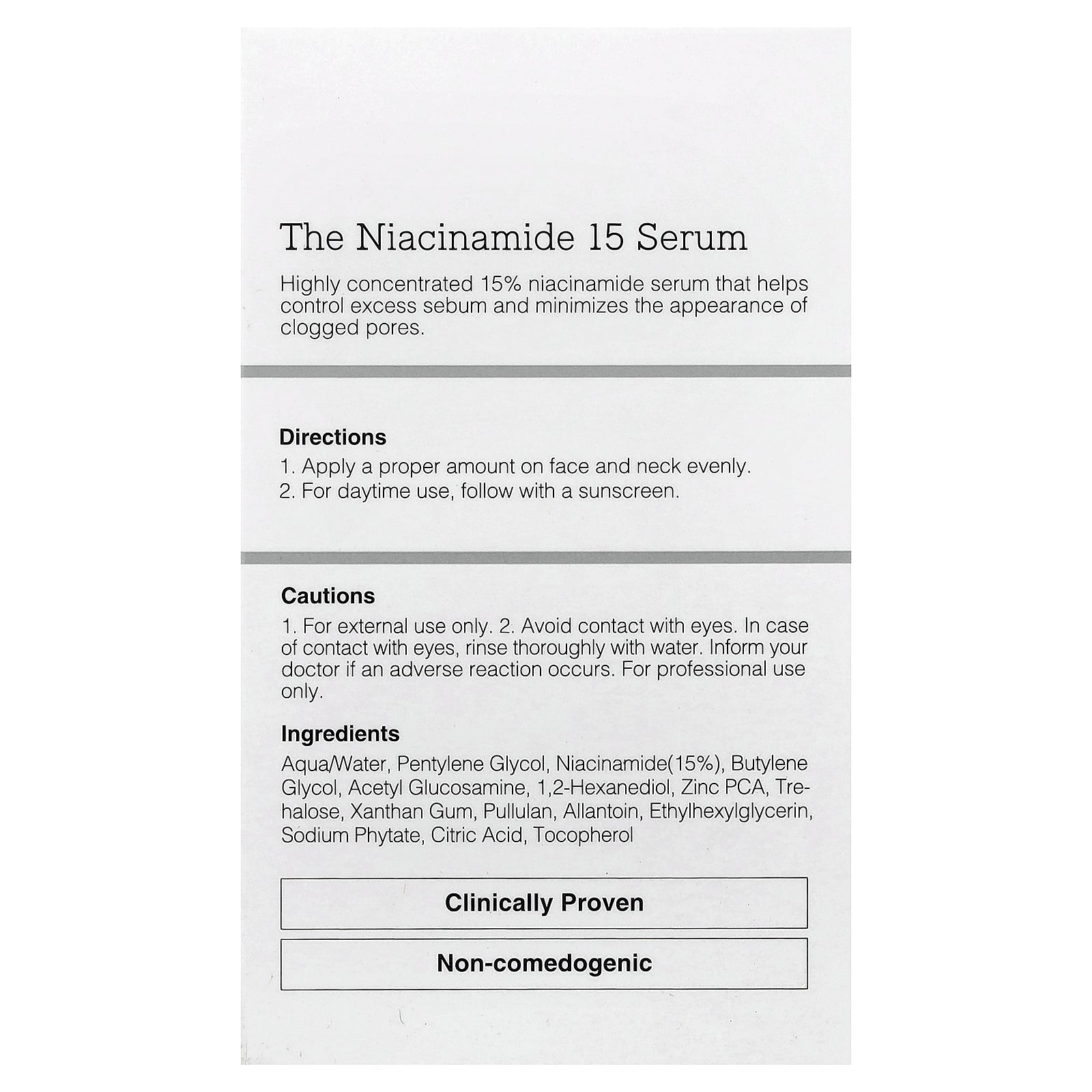 Highly concentrated 15% niacinamide serum that helps control excess sebum and minimizes the appearance of clogged pores.