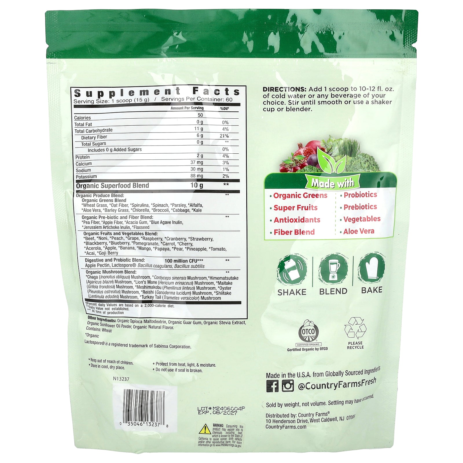 - Fruits, Vegetables, Super Greens, Mushrooms & Probiotics