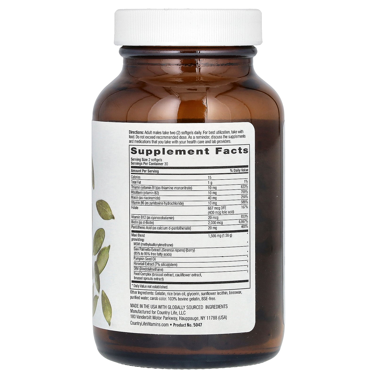 Adult males take two (2) softgels daily. For best utilization take with food. Do not exceed recommended dose. As a reminder, discuss the supplements and medications that you take with your health care and lab providers.