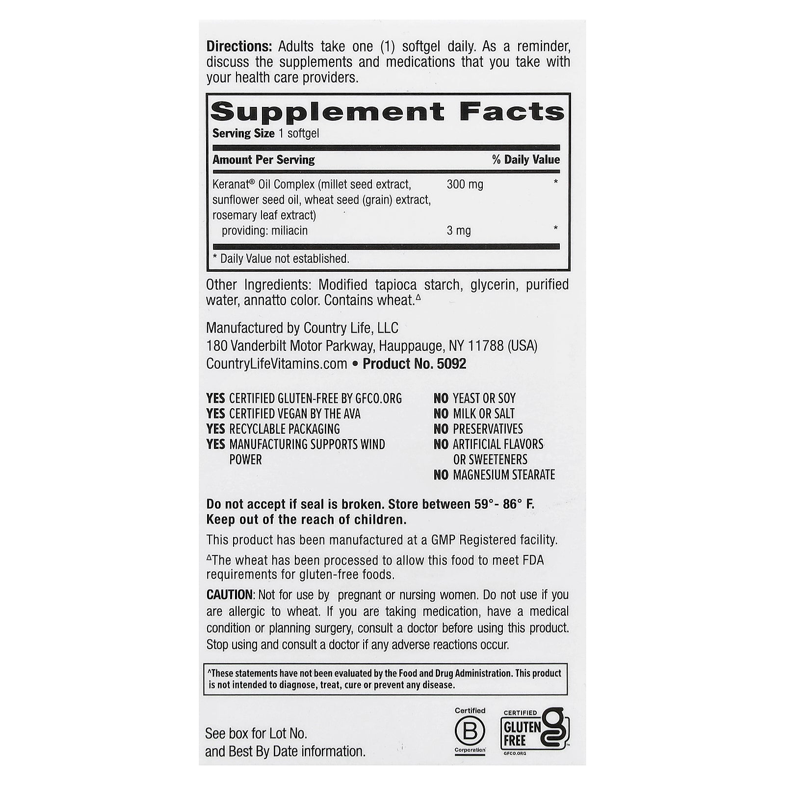 | Keranat® Oil Complex (millet seed extract, sunflower seed oil, wheat seed (grain) extract, rosemary leaf extract) providing: miliacin |