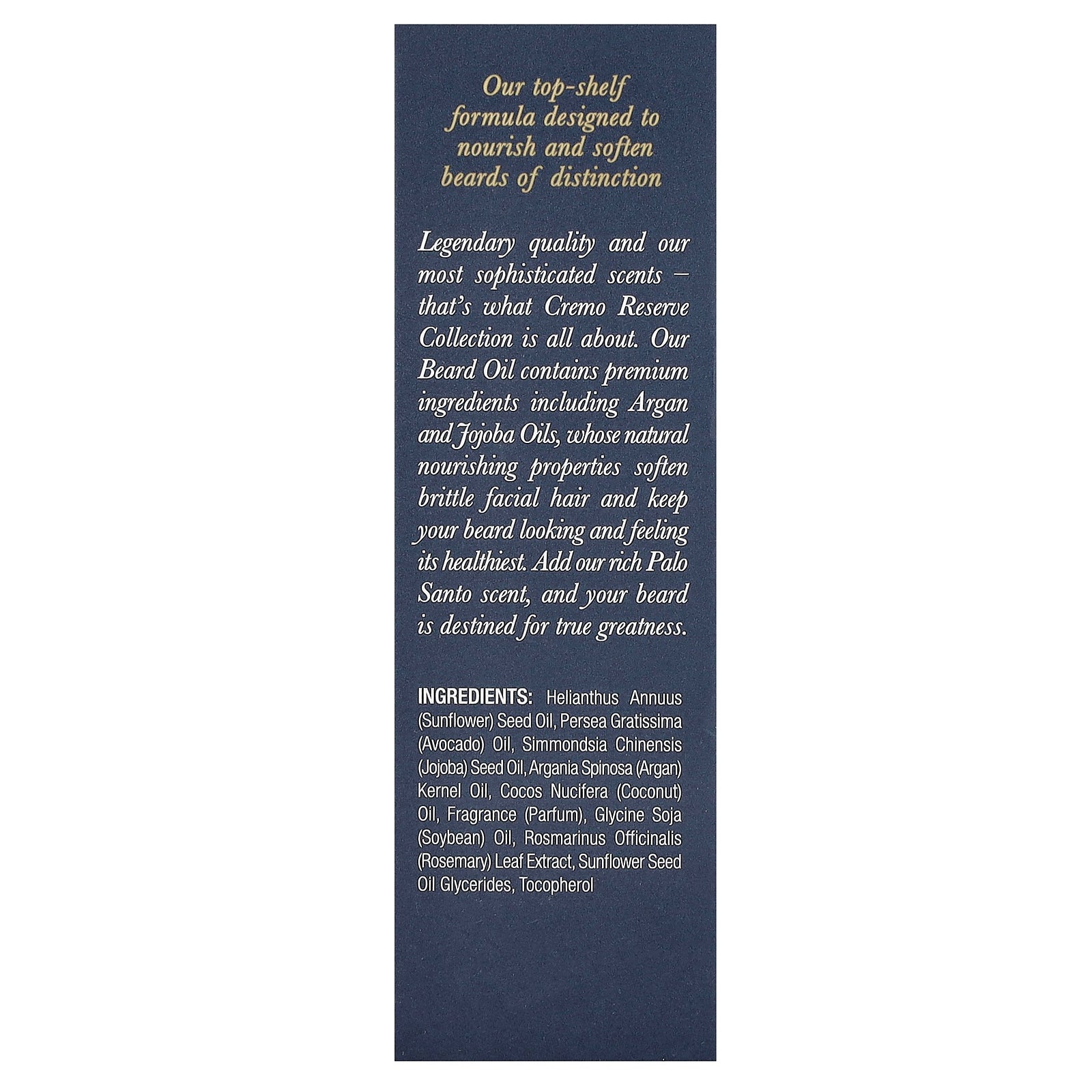 Legendary quality and our most sophisticated scents - that's what Cremo Reserve Collection is all about. Our Beard Oil contains premium ingredients including Argan and Jojoba Oils, whose natural nourishing properties soften brittle facial hair and keep your beard looking and feeling its healthiest. Add our rich Palo Santo scent, and your beard is destined for true greatness.