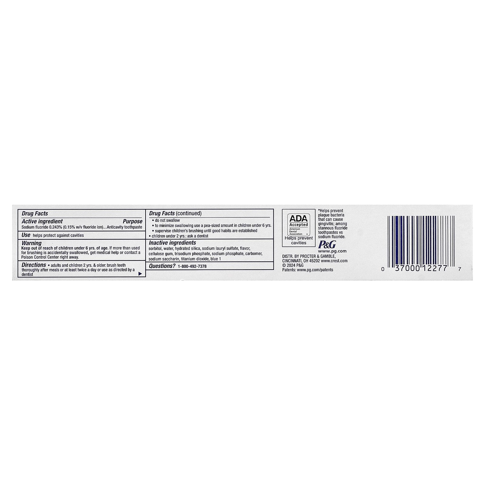 | Sorbitol, water, hydrated silica, sodium lauryl sulfate, flavor, cellulose gum, trisodium phosphate, sodium phosphate, carbomer, sodium saccharin, titanium dioxide, blue 1 |