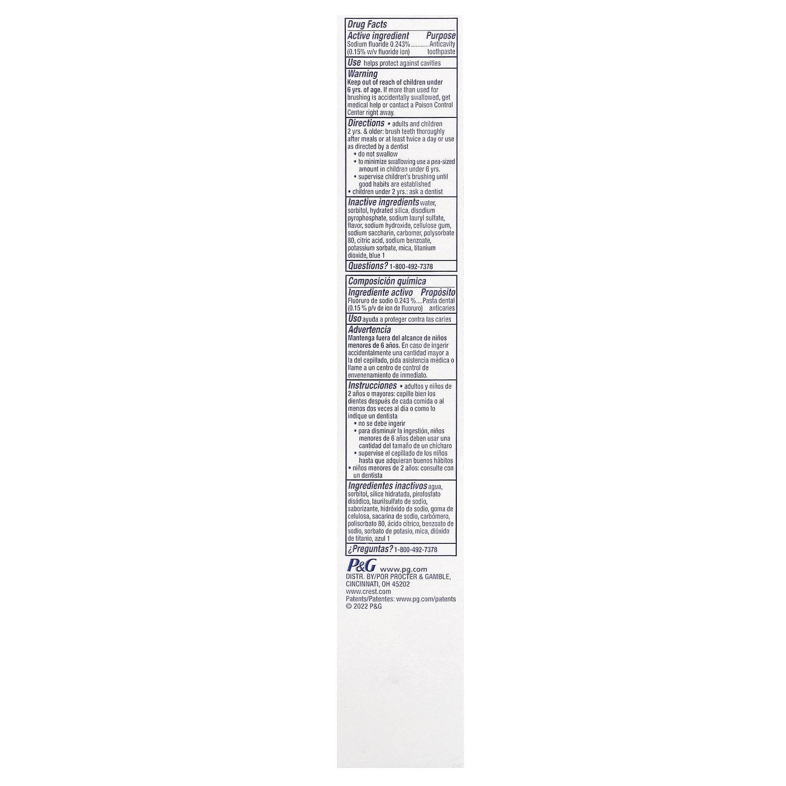 | Water, sorbitol, hydrated silica, disodium pyrophosphate, sodium lauryl sulfate, flavor, sodium hydroxide, cellulose gum, sodium saccharin, carbomer, polysorbate 80, citric acid, sodium benzoate, potassium sorbate, mica, titanium dioxide, blue 1. |