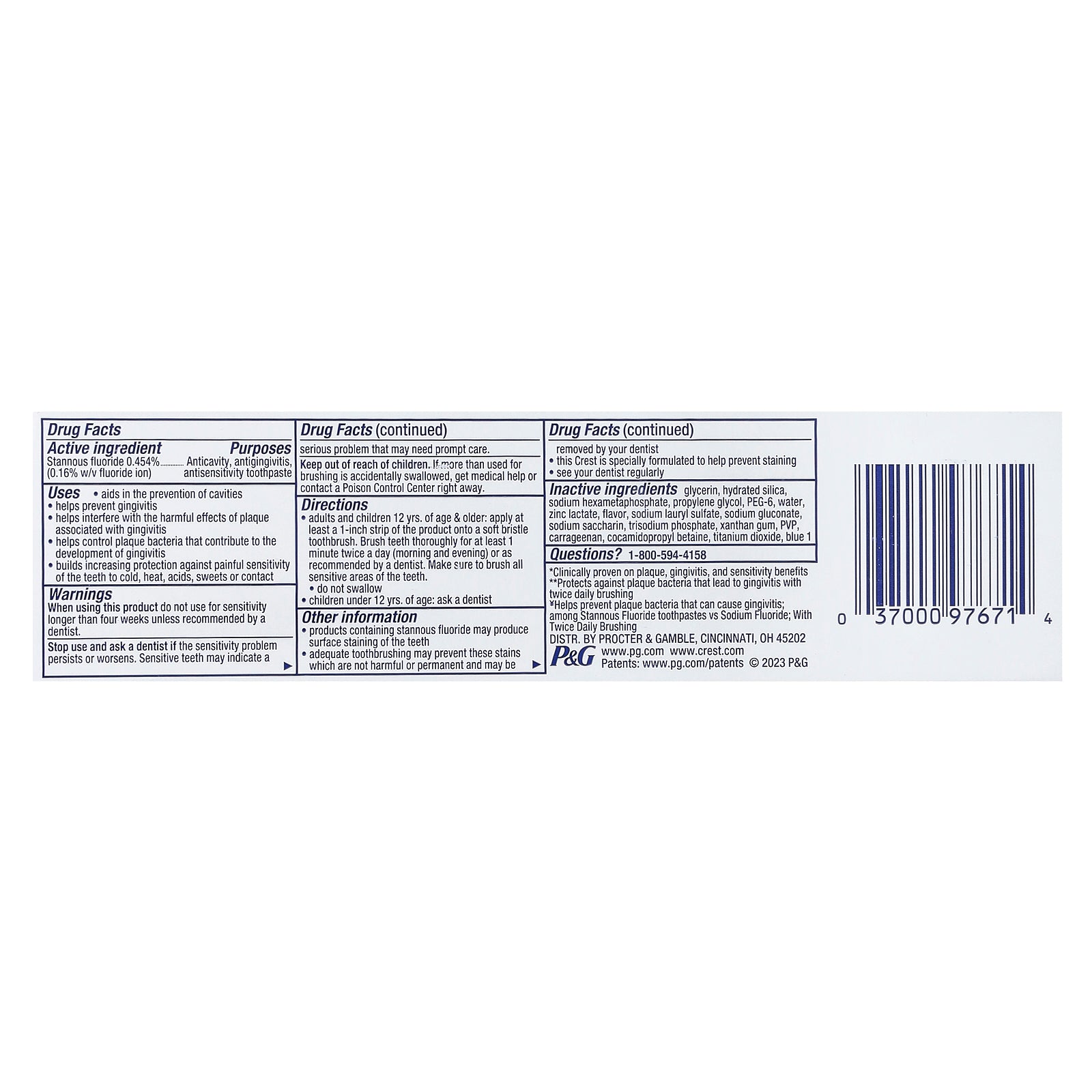| Glycerin, hydrated silica, sodium hexametaphosphate, propylene glycol, PEG-6, water, zinc lactate, flavor, sodium lauryl sulfate, sodium gluconate, sodium saccharin, trisodium phosphate, xanthan gum, PVP, carrageenan, cocamidopropyl betaine, titanium dioxide, blue 1. |