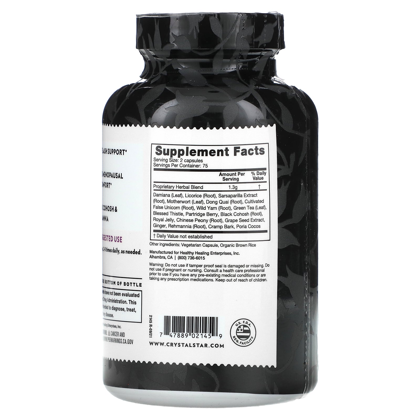 Ease hot flashes and menopause discomfort with Black Cohosh, Rehmannia, Damiana & Licorice