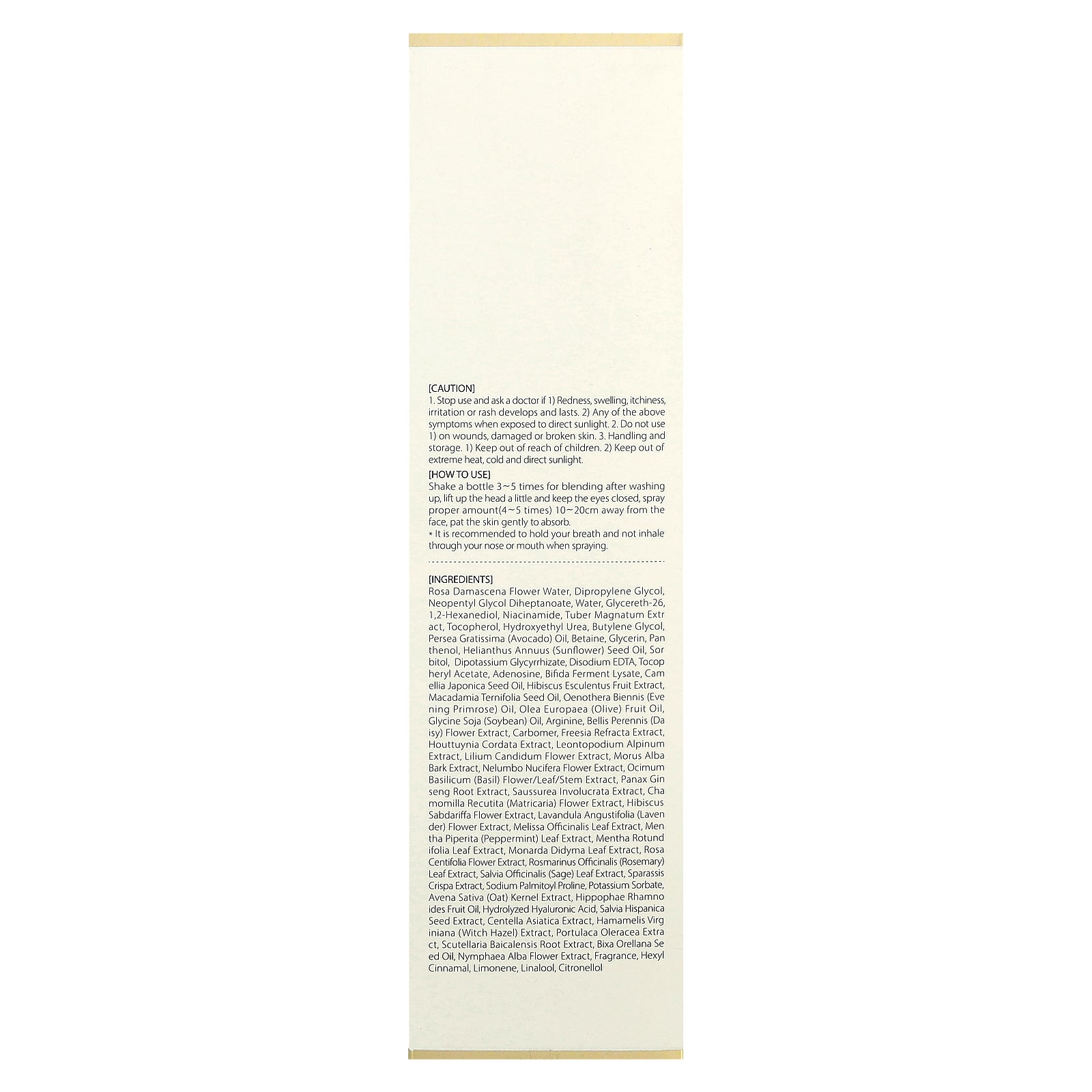 Shake a bottle 3-5 times for blending after washing up, lift up the head a little and keep the eyes closed, spray proper amount (4-5) times 10-20 cm away from the face, pat the skin gently to absorb. It is recommended to hold your breath and not inhale through your nose or mouth when spraying.