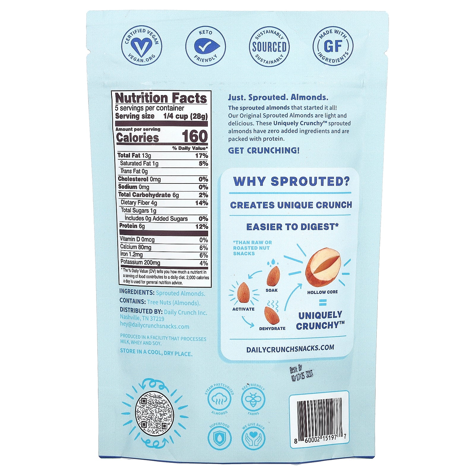 The sprouted almonds that started it all! Our Original Sprouted Almonds are light and delicious. These Uniquely Crunchy™ sprouted almonds have zero added ingredients and are packed with protein. Get crunching!
