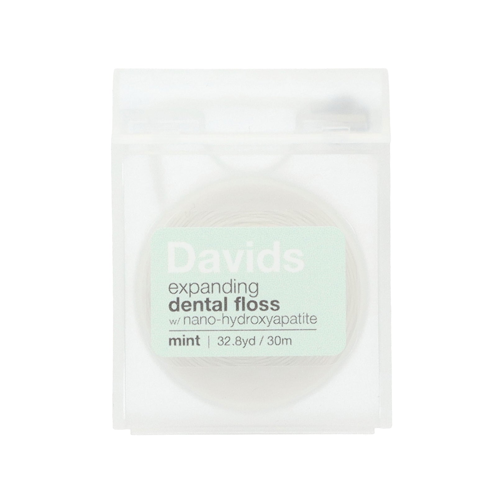 Davids floss is designed to expand, creating increased surface area to more effectively grab plaque and debris for a deeper clean. The multifilament strand is designed for max strength and infused with vegan wax & cocoa butter to gently and smoothly clean between teeth and gums. Nano-Hydroxyapatite is added for aiding remineralization in hard to reach areas.