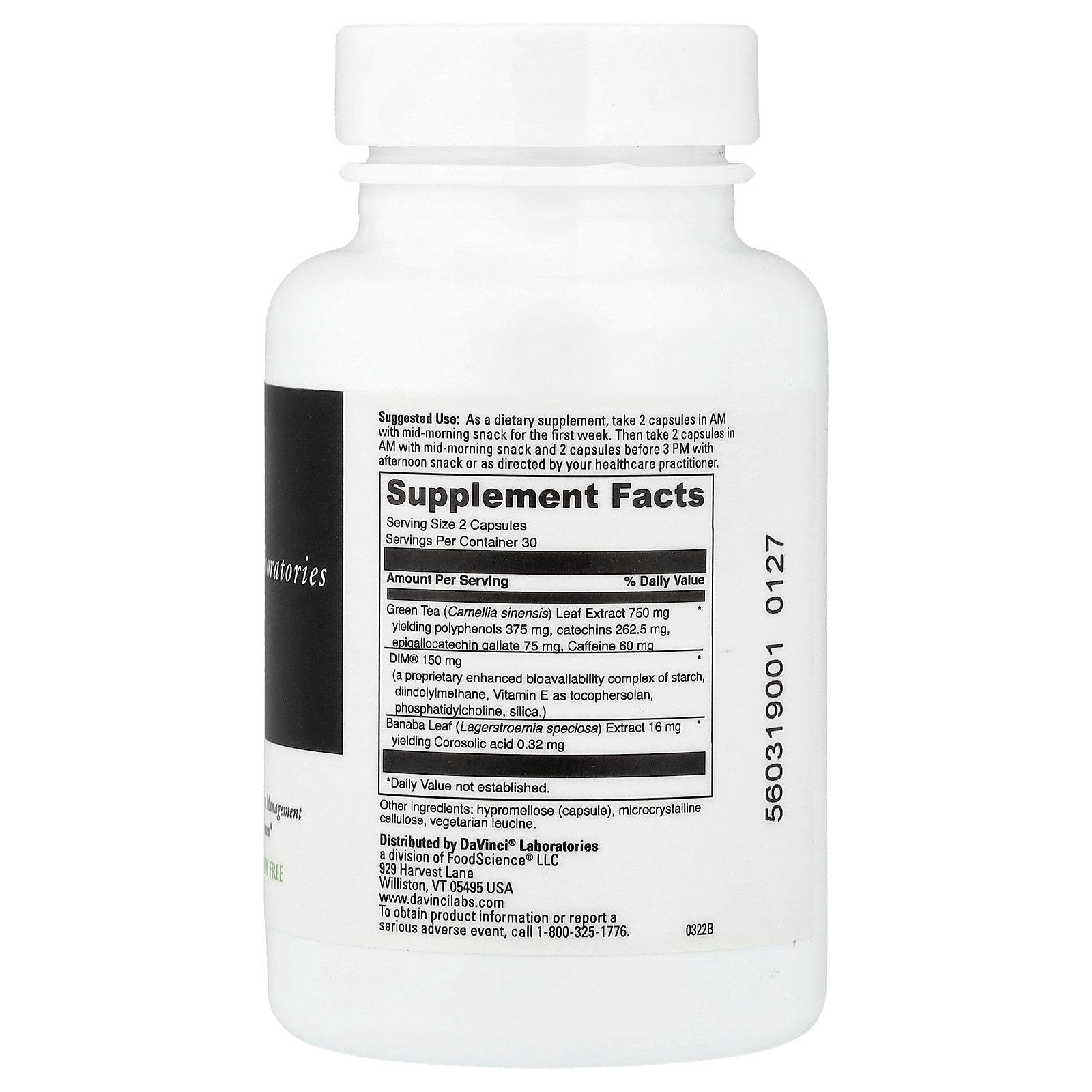 | Green Tea (Camellia sinensis) Leaf Extract yielding polyphenols 375 mg, catechins 262.5 mg, epigallocatechin gallate 75 mg, Caffeine 60 mg |