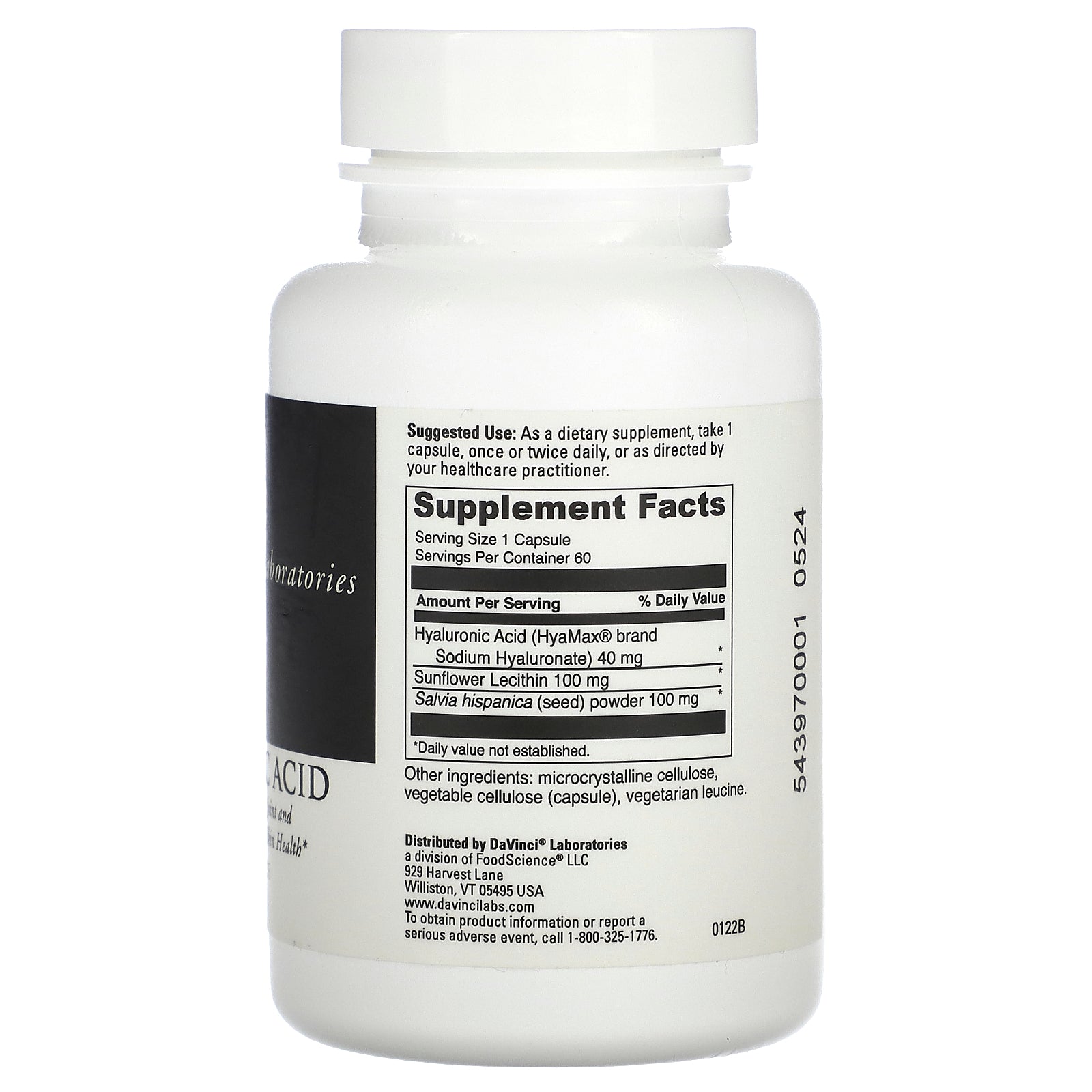 HyaMax® brand HA, is a low Dalton weight Sodium Hyaluronate for optimal absorption and utilization, which helps to moisturize skin and support skin elasticity as well as maintain proper joint & connective tissue functions. We've added Salvia hispanica and lecithin as synergists to support the absorption of Hyaluronic Acid. HA supplementation may help to reduce the appearance of age lines around the eyes, face and neck, as well as support joint and muscle comfort.