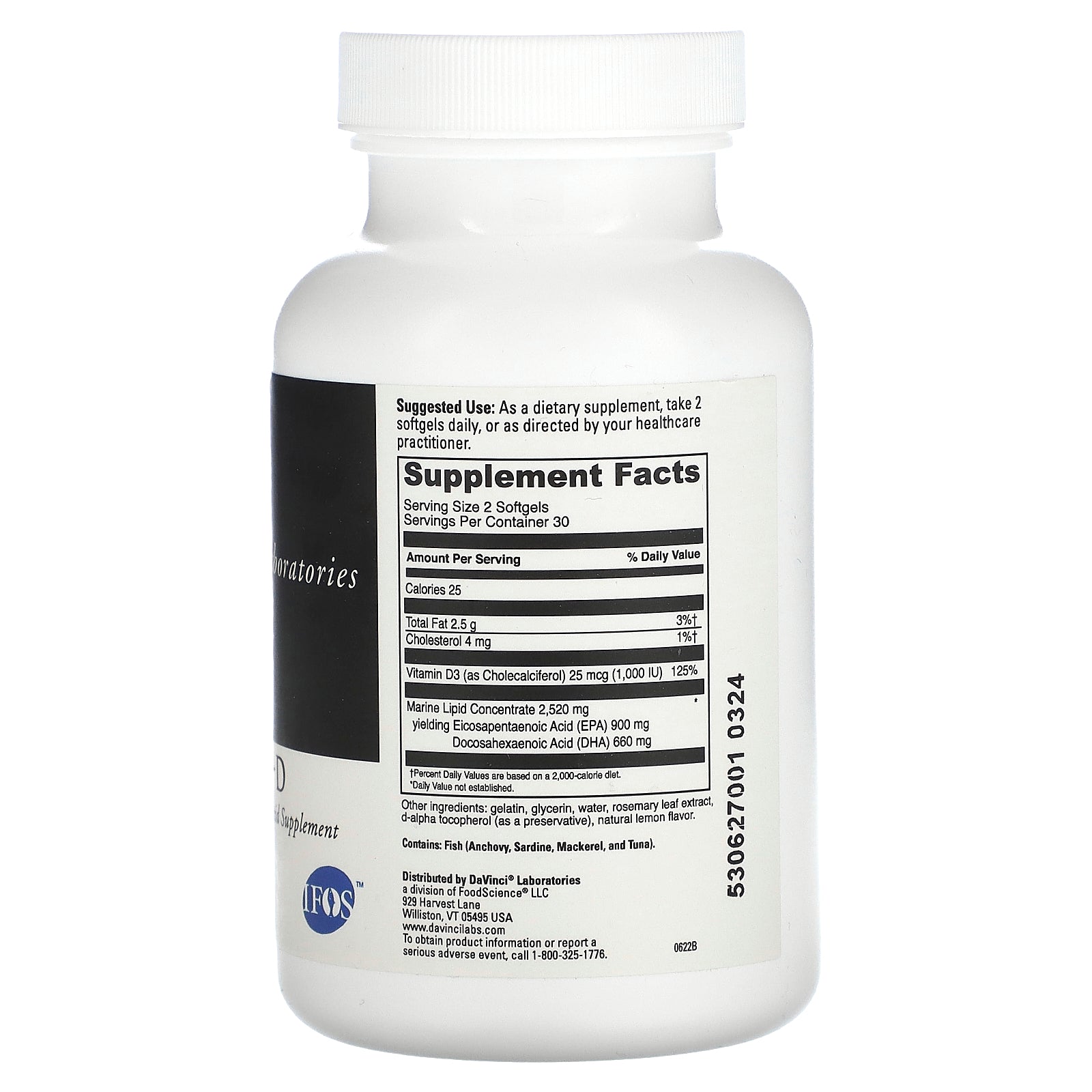 Omega 3 HP-D is our superior quality, lemon flavored Omega-3 formula providing 900 mg EPA and 660 mg DHA combined with 25 mcg of Vitamin 03. The Omega-3 fish oil in this product is from wild caught anchovies, sardines, mackerel, and tuna. The oil is then molecularly distilled to ensure purity and stability. Omega 3 HP-D supports cholesterol balance, cardiovascular, joint & skin health, as well as immune system function.