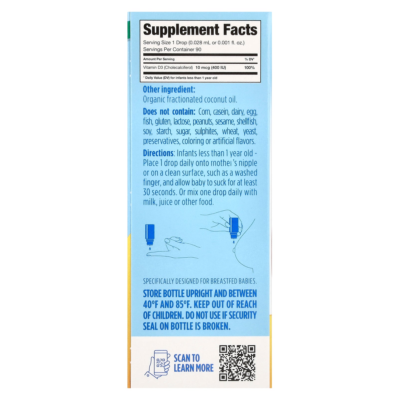 Infants less than 1 year old - Place 1 drop daily onto mother's nipple or on a clean surface, such as a washed finger, and allow baby to suck for at least 30 seconds. Or mix one drop daily with milk, juice or other food.
