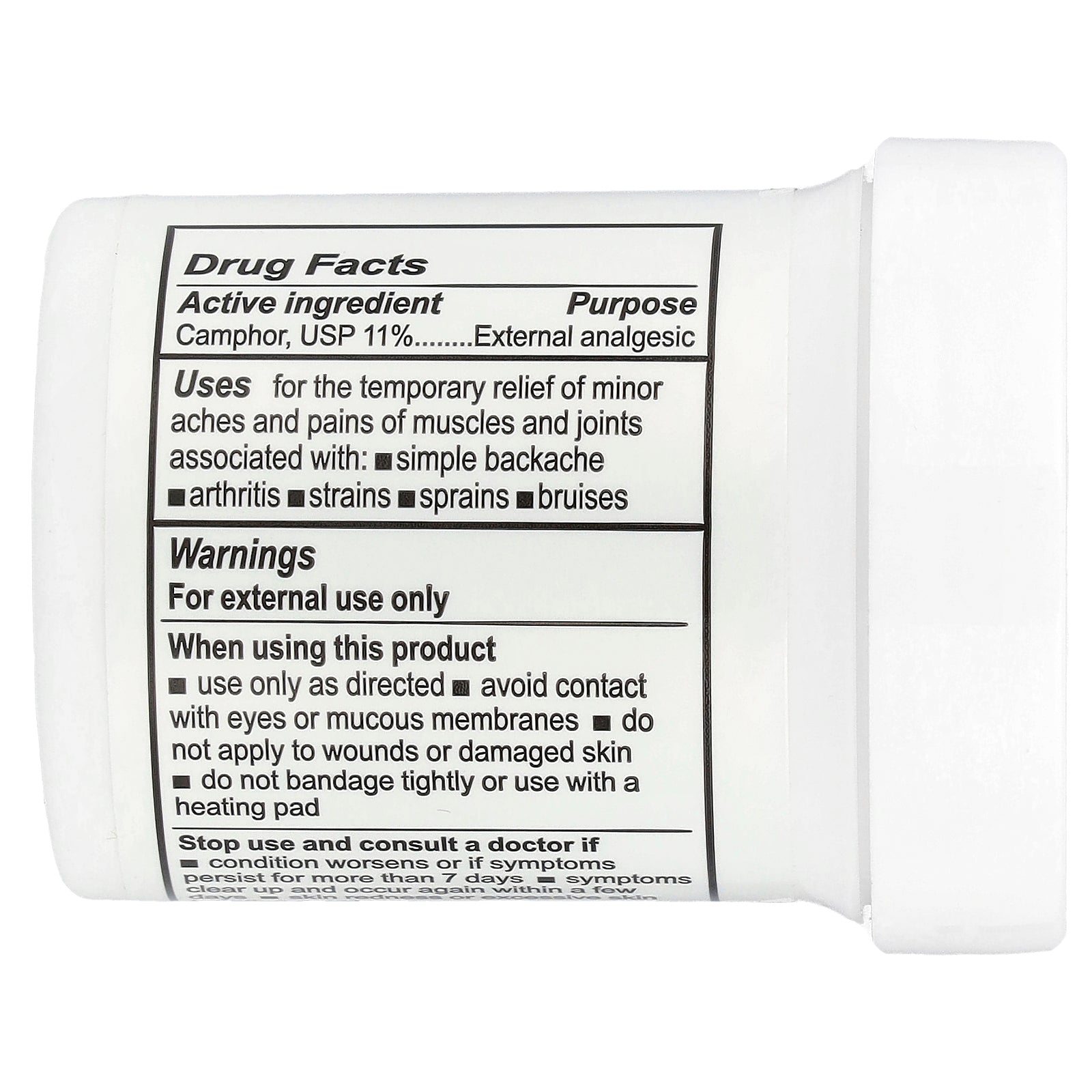 | Camphor, USP 11% | External analgesic |
