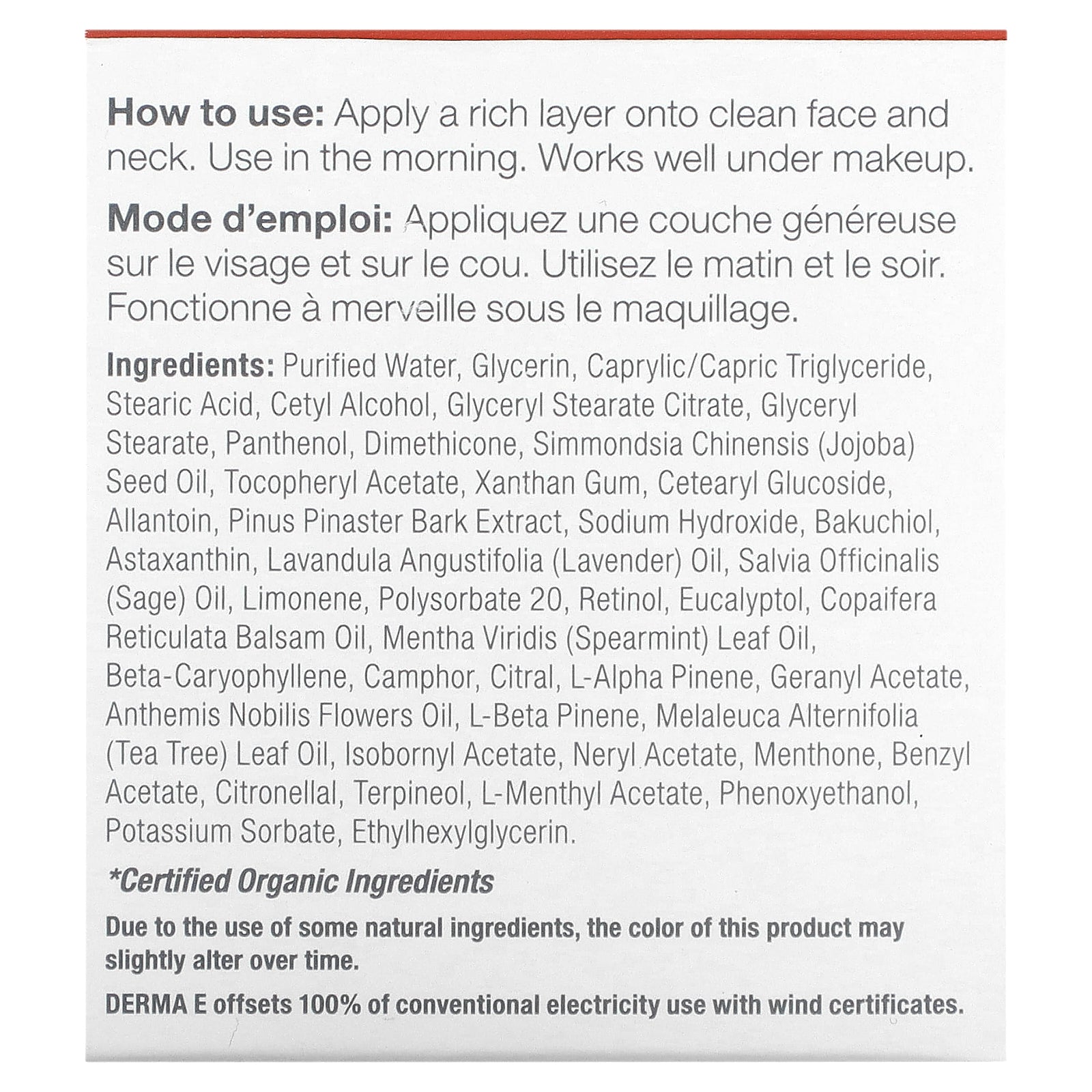 Purified water, glycerin, caprylic/capric triglyceride, stearic acid, cetyl alcohol, glyceryl stearate citrate, glyceryl stearate, panthenol, dimethicone, simmondsia chinensis (jojoba) seed oil, tocopheryl acetate, xanthan gum, cetearyl glucoside, allantoin, pinus pinaster bark extract, sodium hydroxide, bakuchiol, astaxanthin, lavandula angustifolia (lavender) oil, salvia officinalis (sage) oil, limonene, polysorbate 20, retinol, eucalyptol, copaifera reticulata balsam oil, mentha viridis (spearmint) leaf oil, beta-caryophyllene, camphor, citral, l-alpha pinene, geranyl acetate, anthemis nobilis flowers oil, l-beta pinene, melaleuca alternifolia (tea tree) leaf oil, isobornyl acetate, neryl acetate, menthone, benzyl acetate, citronellal, terpineol, l-menthyl acetate, phenoxyethanol, potassium sorbate, ethylhexylglycerin.