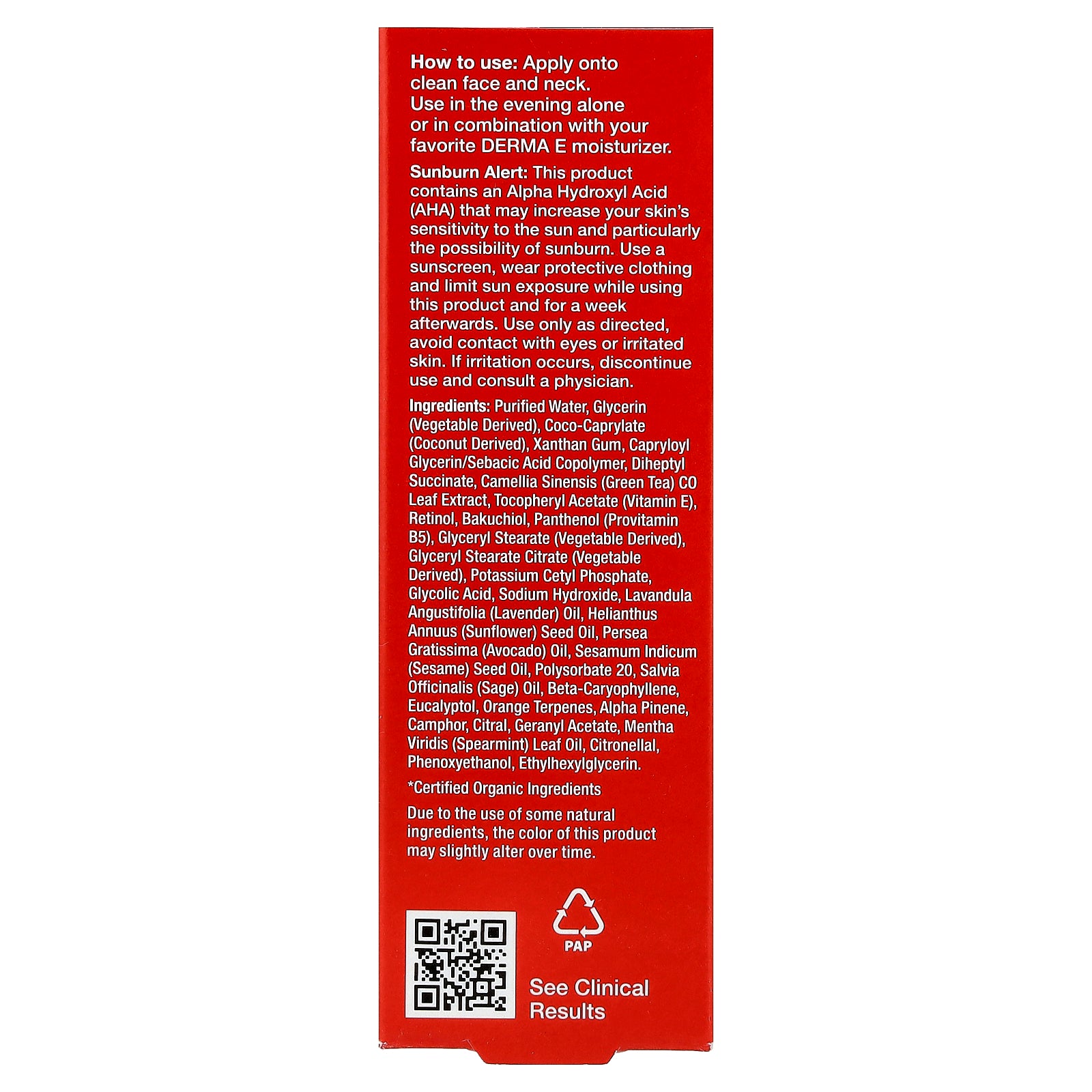 Apply onto clean face and neck. Use in the evening alone or in combination with your favorite DERMA E moisturizer.