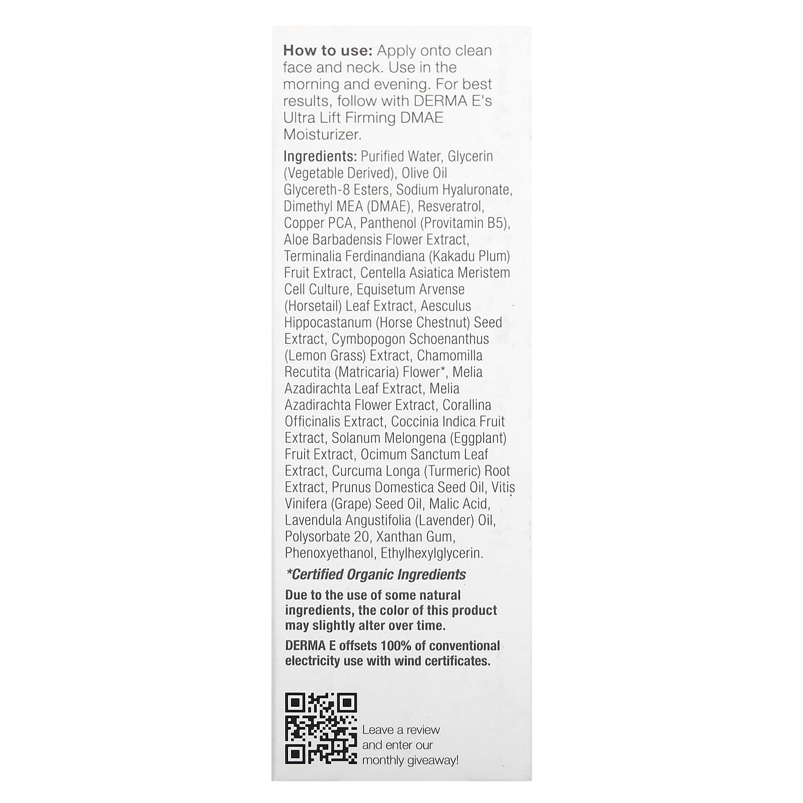 Apply onto clean face and neck. Use in the morning and evening. For best results, follow with Derma E's Ultra Lift Firming DMAE Moisturizer.