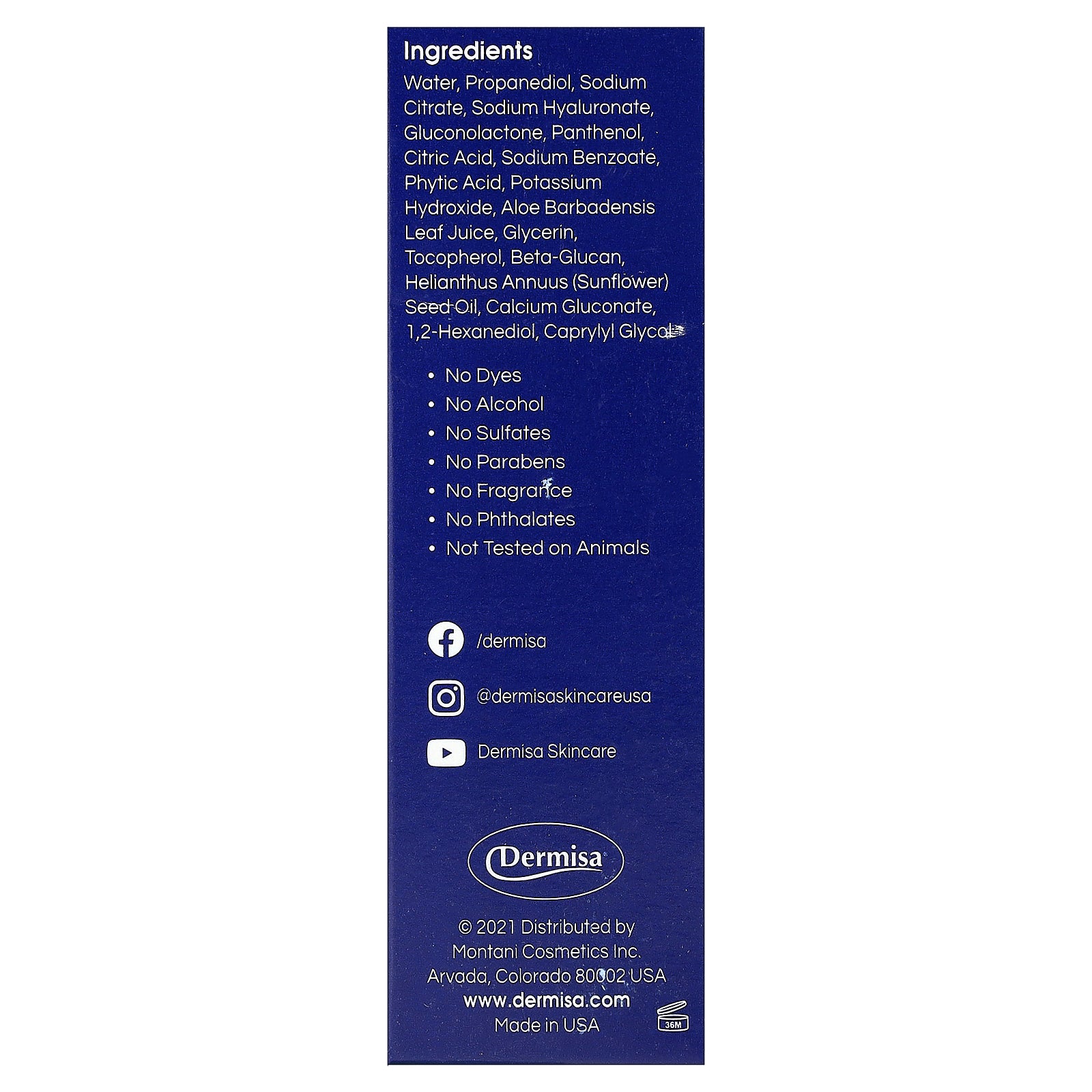 Dermisa® Hyaluronic Acid Serum is an ultra-hydrating formulation that leaves skin feeling and looking plump and soft to the touch. This lightweight rapidly- absorbing serum is recommended for reducing appearance of wrinkles and fine lines, relieving signs of skin fatigue, and leaving the skin moisturized.