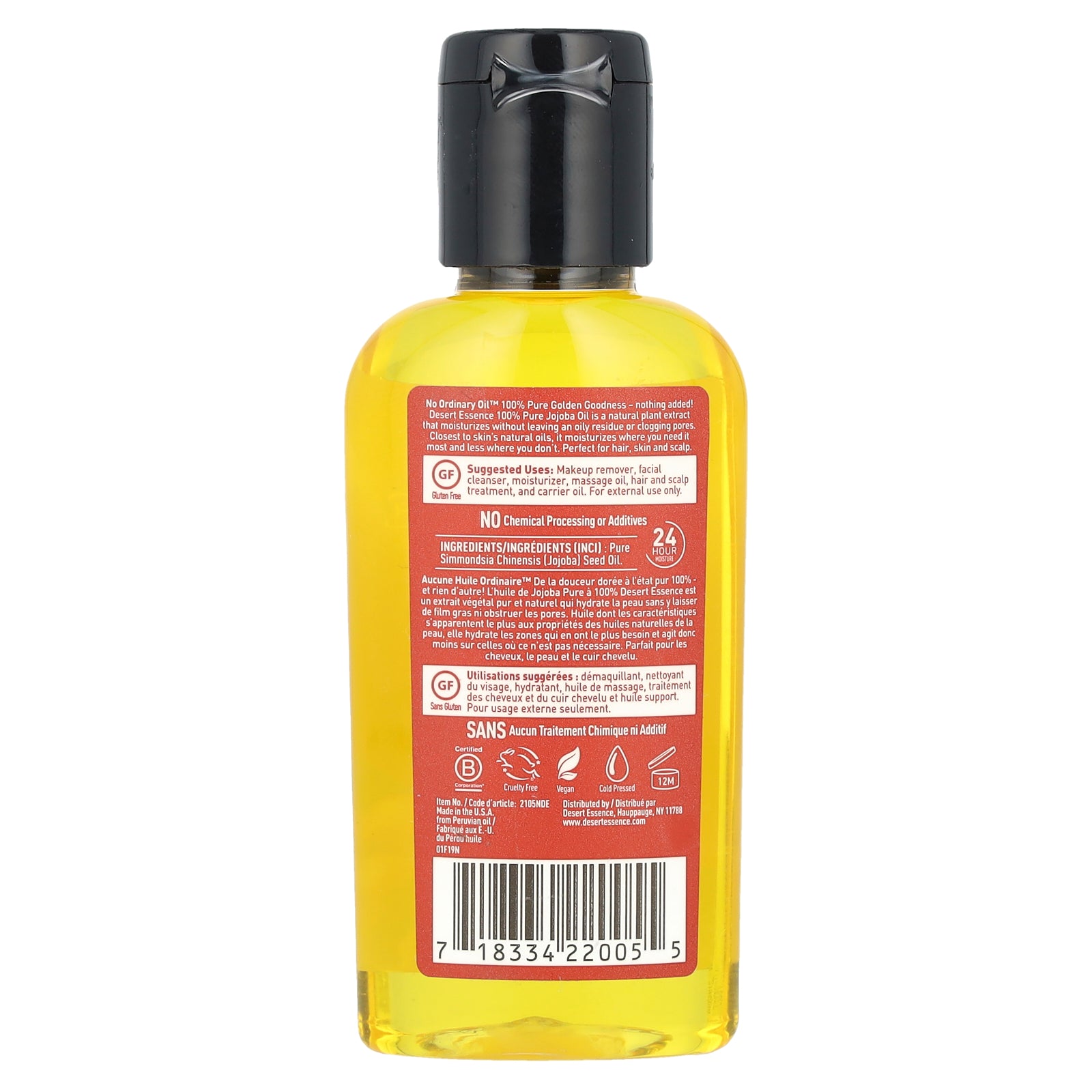 No Ordinary Oil™ 100% Pure Golden Goodness - nothing added! Desert Essence 100% Pure Jojoba Oil is a natural plant extract that moisturizes without leaving an oily residue or clogging pores. Closest to skin's natural oils, it moisturizes where you need it most and less where you don't. Perfect for hair, skin and scalp.