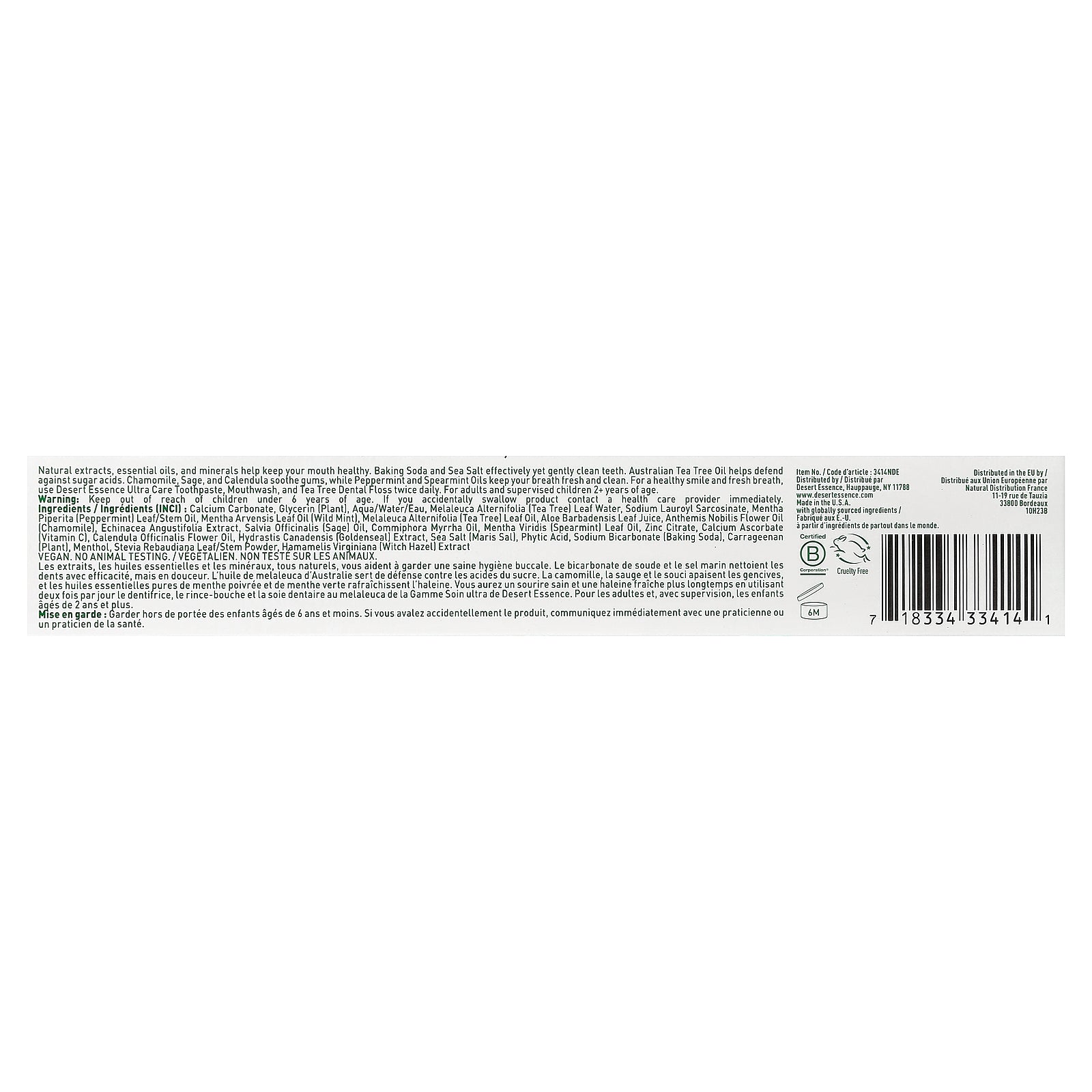 For a healthy smile and fresh breath, use Desert Essence Ultra Care Toothpaste, Mouthwash, and Tea Tree Dental Floss twice daily.