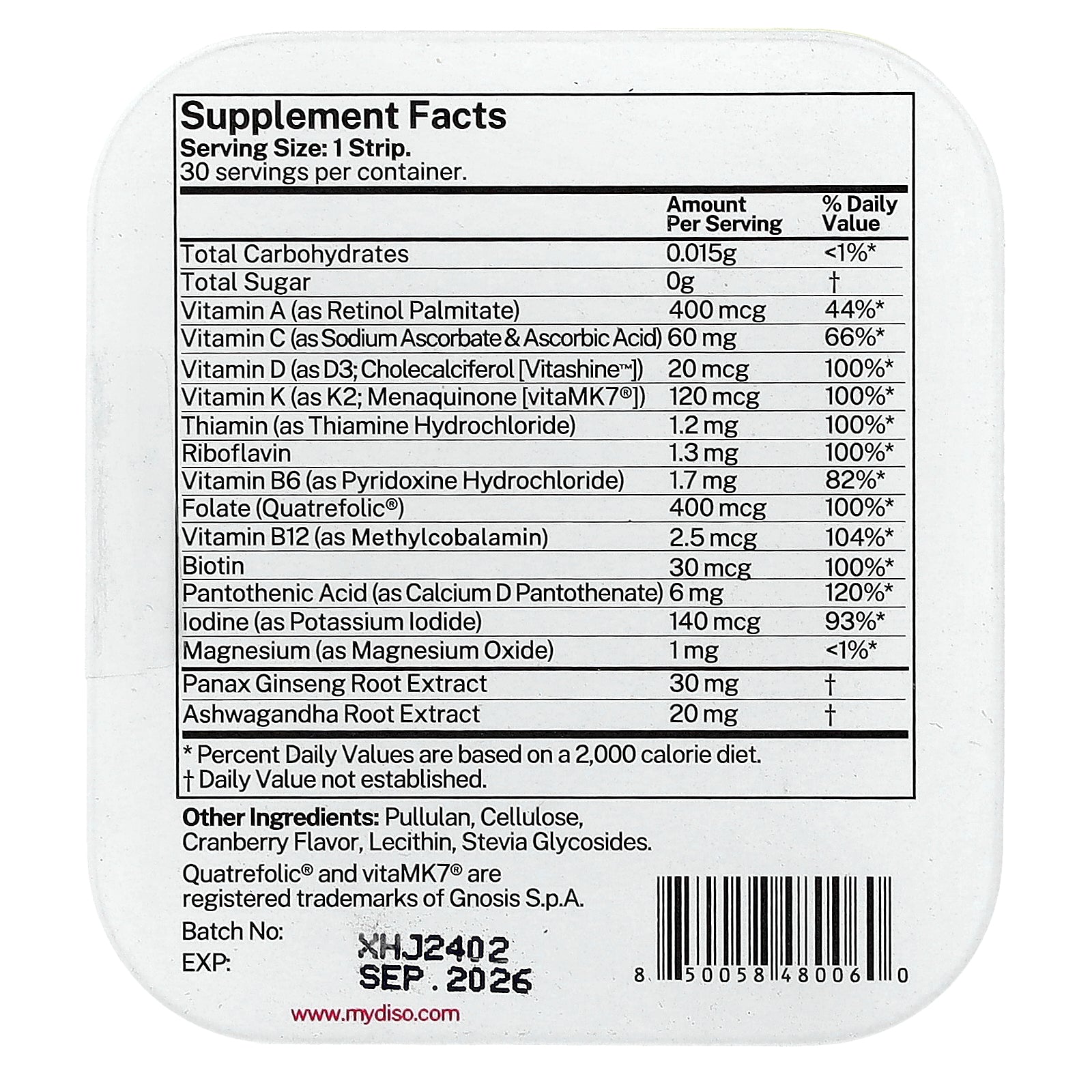Take 1 strip daily, preferably with a meal. Place a Diso® strip on the tongue and allow it to dissolve.