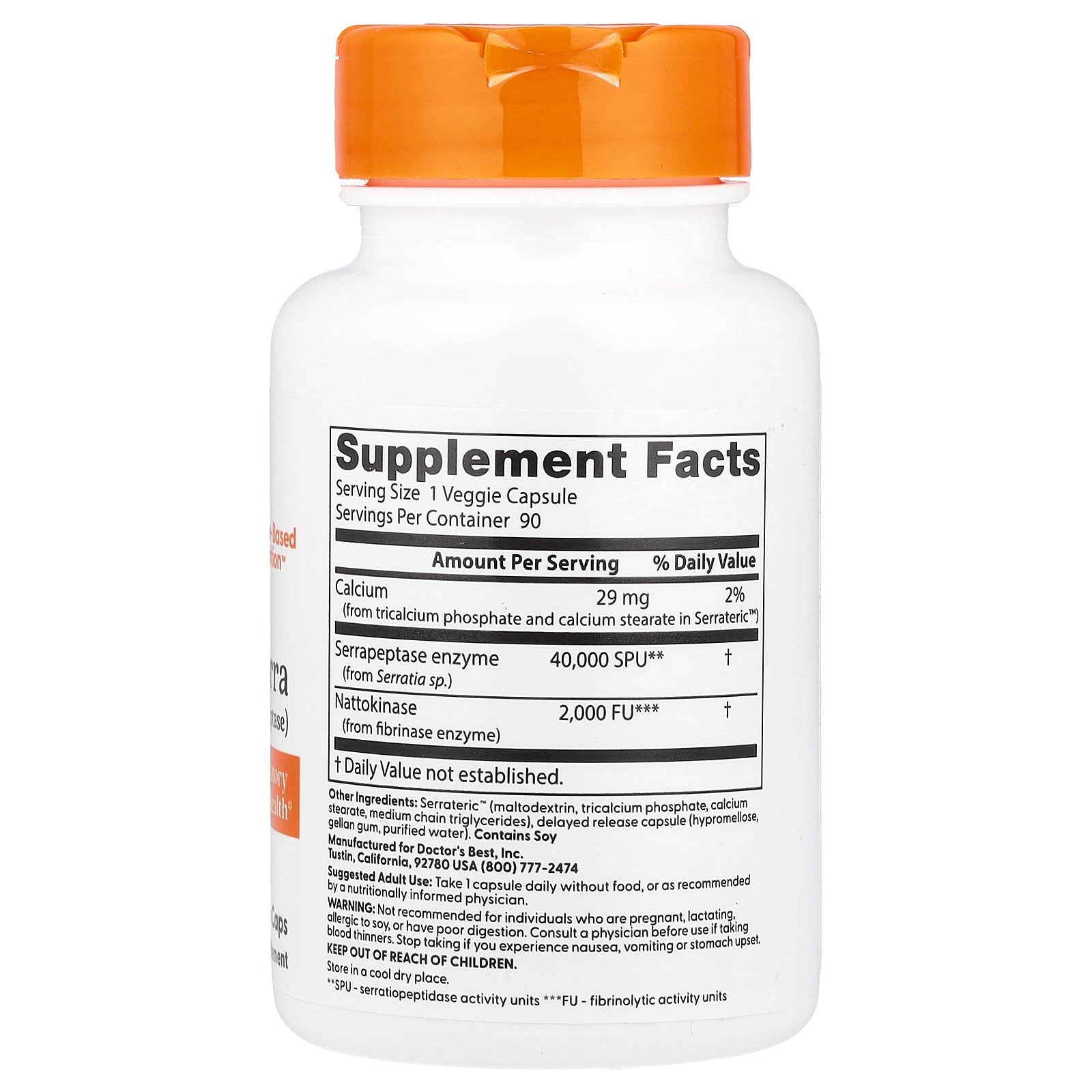 At Doctor's Best, we believe in synergy. Our Natto-Serra blend combines Nattokinase and Serrapeptase enzymes, known for boosting immunity and supporting healthy circulation. This unique formula optimizes Serrapeptase's effectiveness, ensuring optimal absorption in the intestines.