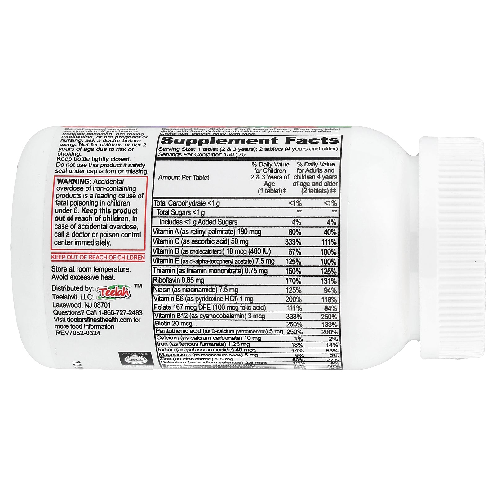 | Serving Size: 1 tablet (2 & 3 years); 2 tablets (4 years and older) | |||