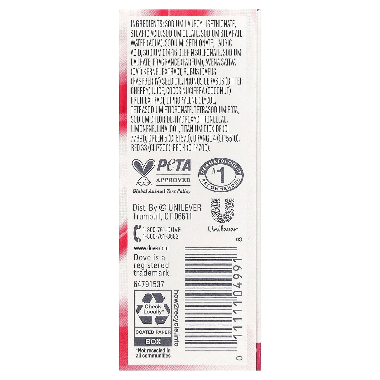 Sodium lauroyl isethionate, stearic acid, sodium oleate, sodium stearate, water (aqua), sodium isethionate, lauric acid, sodium c14-16 olefin sulfonate, sodium laurate, fragrance (parfum), avena sativa (oat) kernel extract, rubus idaeus (raspberry) seed oil, prunus cerasus (bitter cherry) juice, cocos nucifera (coconut) fruit extract, dipropylene glycol, tetrasodium etidronate, tetrasodium edta, sodium chloride, hydroxycitronellal, limonene, linalool, titanium dioxide (ci 77891), green 5 (ci 61570), orange 4 (ci 15510), red 33 (ci 17200), red 4 (ci 14700).