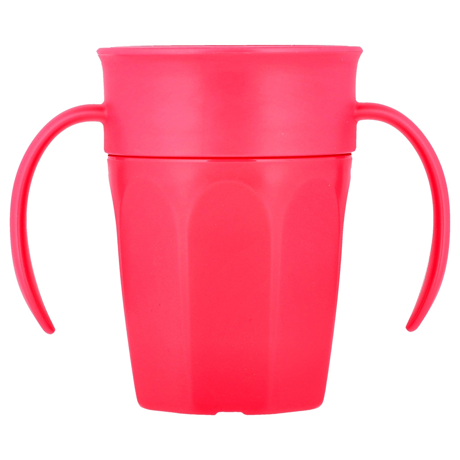 Make baby’s transition to a big kid cup a success with Dr. Brown’s® Milestones™ Cheers360™ Spoutless Cup with Handles. This 360-degree sippy cup lets baby drink from any edge, and the Sip and See clear silicone valve lets baby see inside without spilling for true leak-free learning.