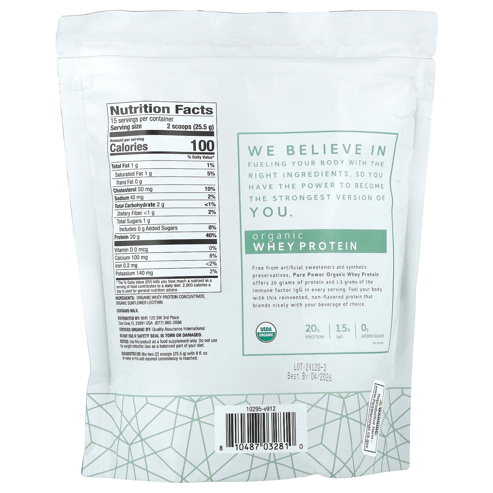 Free from artificial sweeteners and synthetic preservatives, Pure Power Organic Whey Protein offers 20 grams of protein and 1.5 grams of the immune factor lgG in every serving. Fuel your body with this reinvented, non-flavored protein that blends nicely with your beverage of choice.