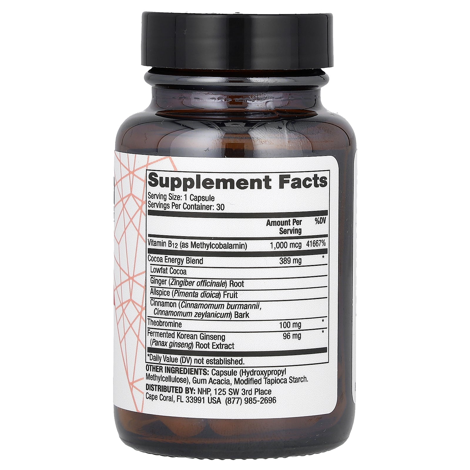 Available in convenient capsule form, Energy Boost Ginseng + B12 provides a gentle mood-lifting energy boost with its unique blend of energizing compounds, including 100 mg of Theobromine.