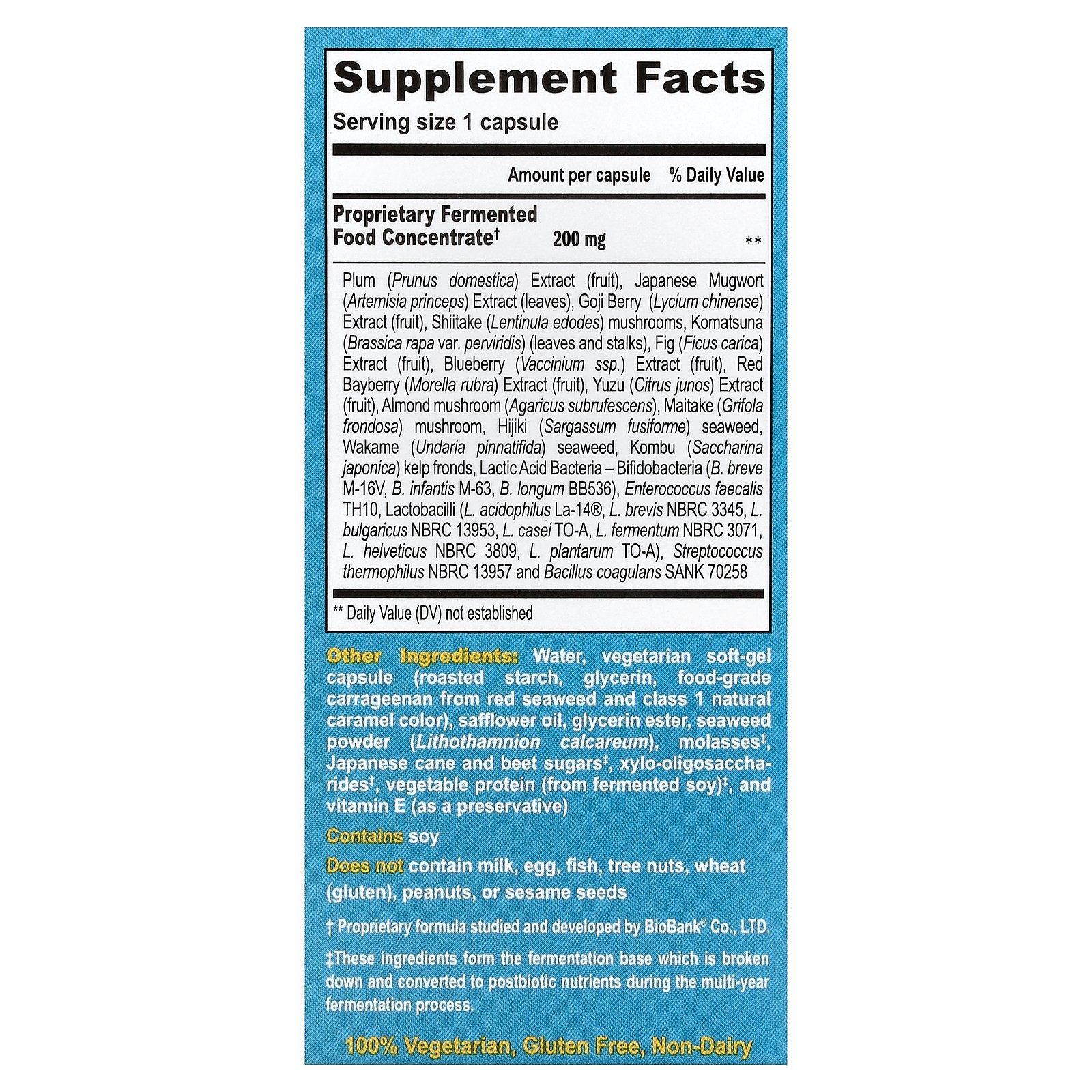 | Plum (Prunus domestica) Extract (fruit), Japanese Mugwort (Artemisia princeps) Extract (leaves), Goji Berry (Lycium chinense) Extract (fruit), Shiitake (Lentinula edodes) mushrooms, Komatsuna (Brassica rapa var. perviridis) (leaves and stalks), Fig (Ficus carica) Extract (fruit), Blueberry (Vaccinium ssp.) Extract (fruit), Red Bayberry (Morella rubra) Extract (fruit), Yuzu (Citrus junos) Extract (fruit), Almond mushroom (Agaricus subrufescens), Maitake (Grifola frondosa) mushroom, Hijiki (Sargassum fusiforme) seaweed, Wakame (Undaria pinnatifida) seaweed, Kombu (Saccharina japonica) kelp fronds, Lactic Acid Bacteria - Bifidobacteria (B. breve M-16V, B. infantis M-63, B. longum BB536), Enterococcus faecalis TH10, Lactobacilli (L. acidophilus La-14®, L. brevis NBRC 3345, L. bulgaricus NBRC 13953, L. casei TO-A, L. fermentum NBRC 3071, L. helveticus NBRC 3809, L. plantarum TO-A), Streptococcus thermophilus NBRC 13957 and Bacillus coagulans SANK 70258 | ||